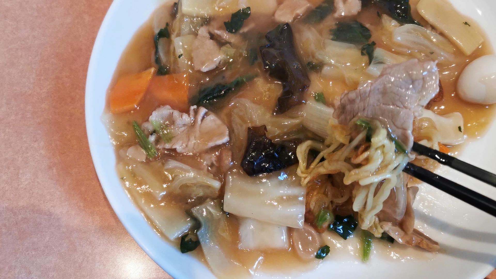 餡がかかった部分が柔らかくなって麺もちょうどいい感じのパリパリ感!