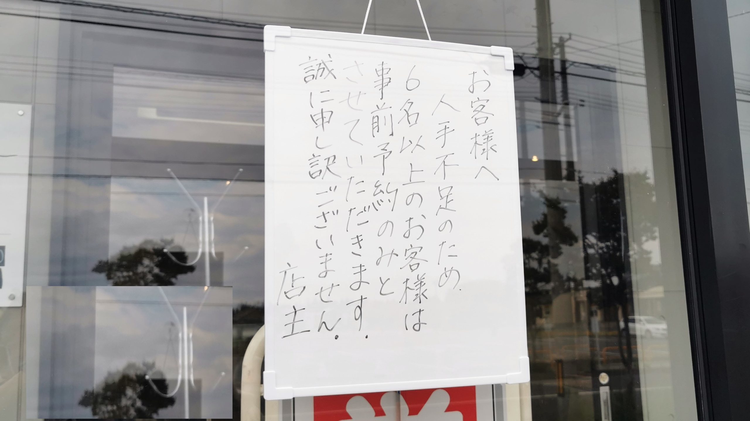 6名以上は要予約、どこも人手不足が深刻ですね!