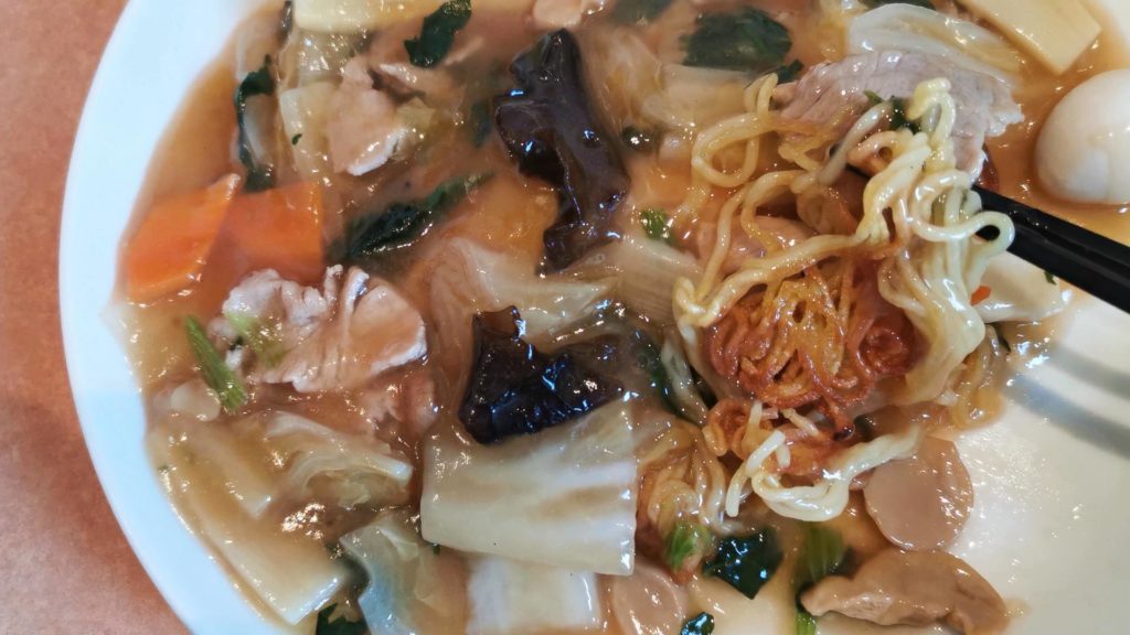 餡がかかった部分が柔らかくなって麺もちょうどいい感じのパリパリ感!