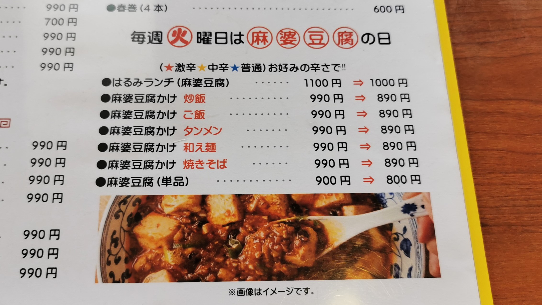 火曜日の麻婆豆腐の日で1000円になりました!