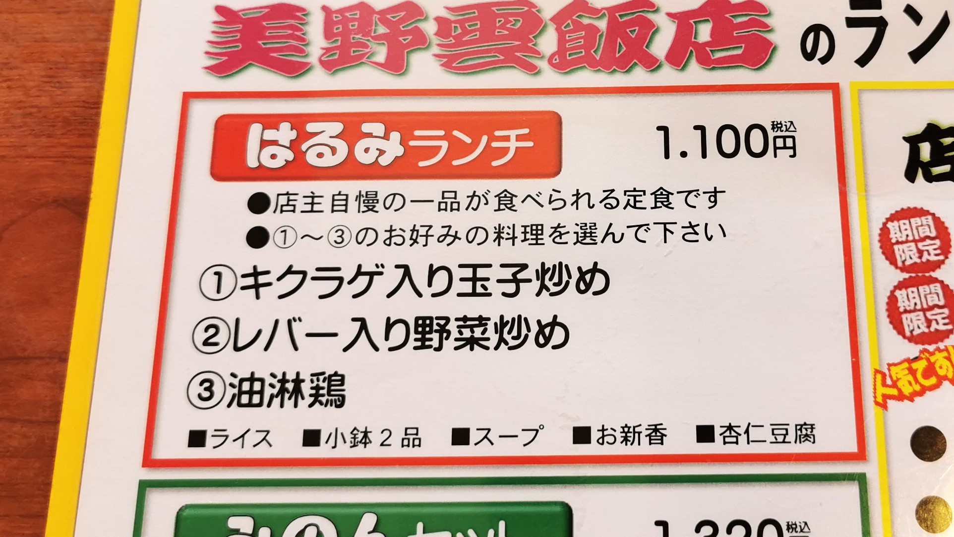 こちらは麻婆豆腐のはるみランチ通常1100円!