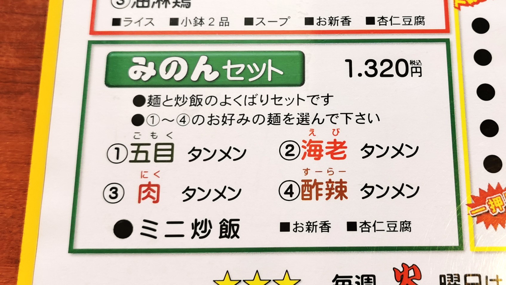 ラーメンとチャーハンのみのんセット1320円です!