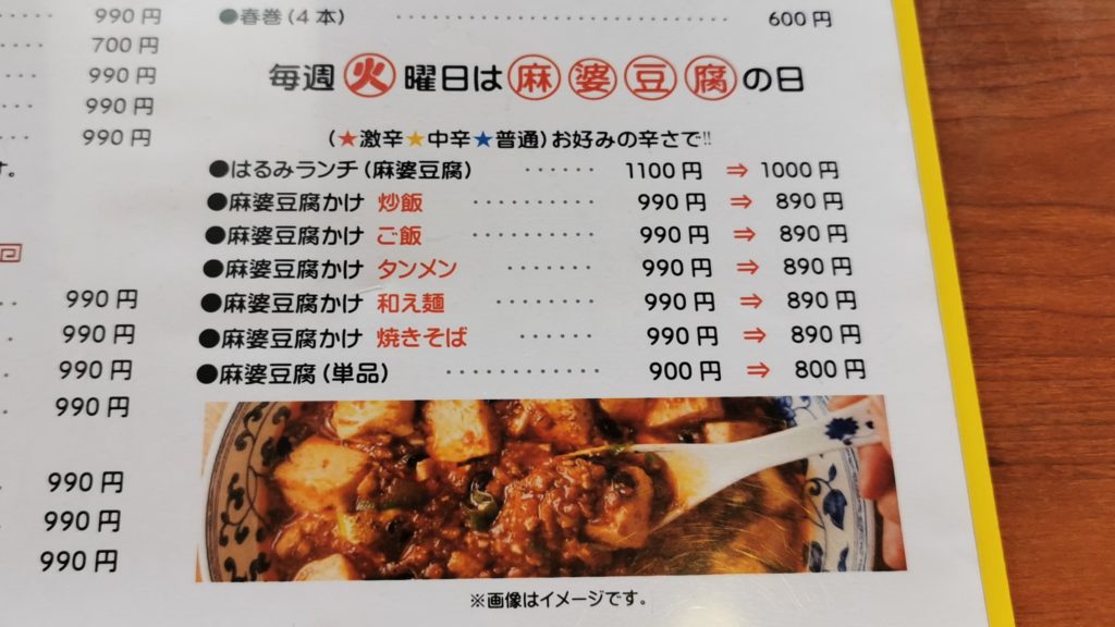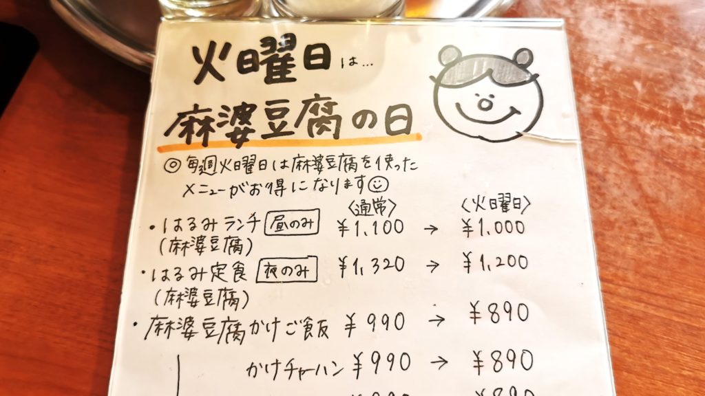 こちらは麻婆豆腐のはるみランチ通常1100円!