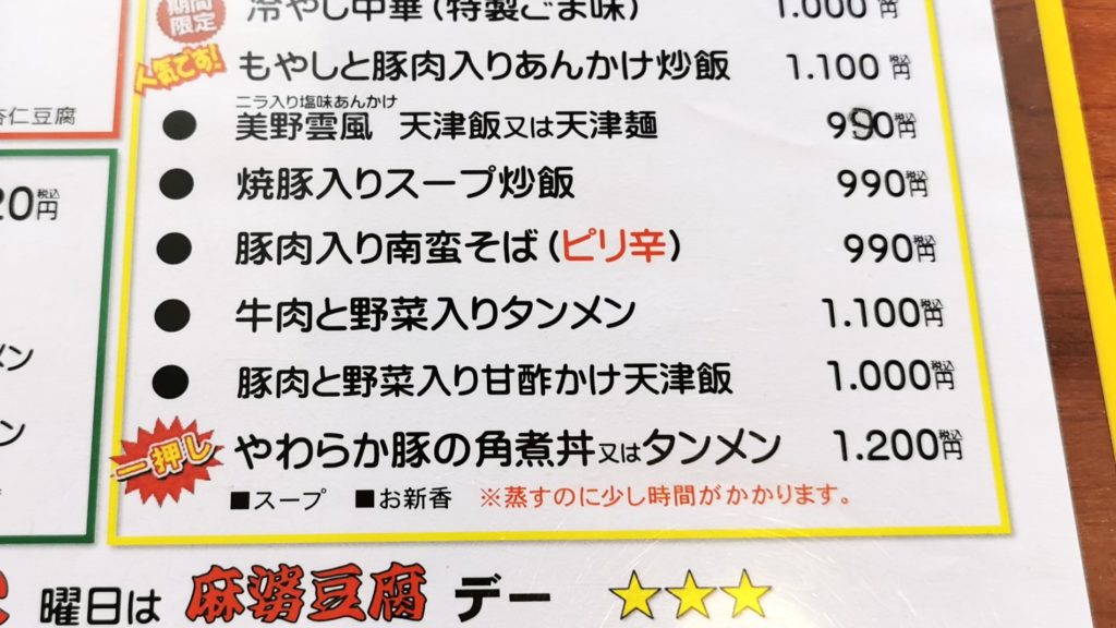 火曜日の麻婆豆腐の日で1000円になりました!