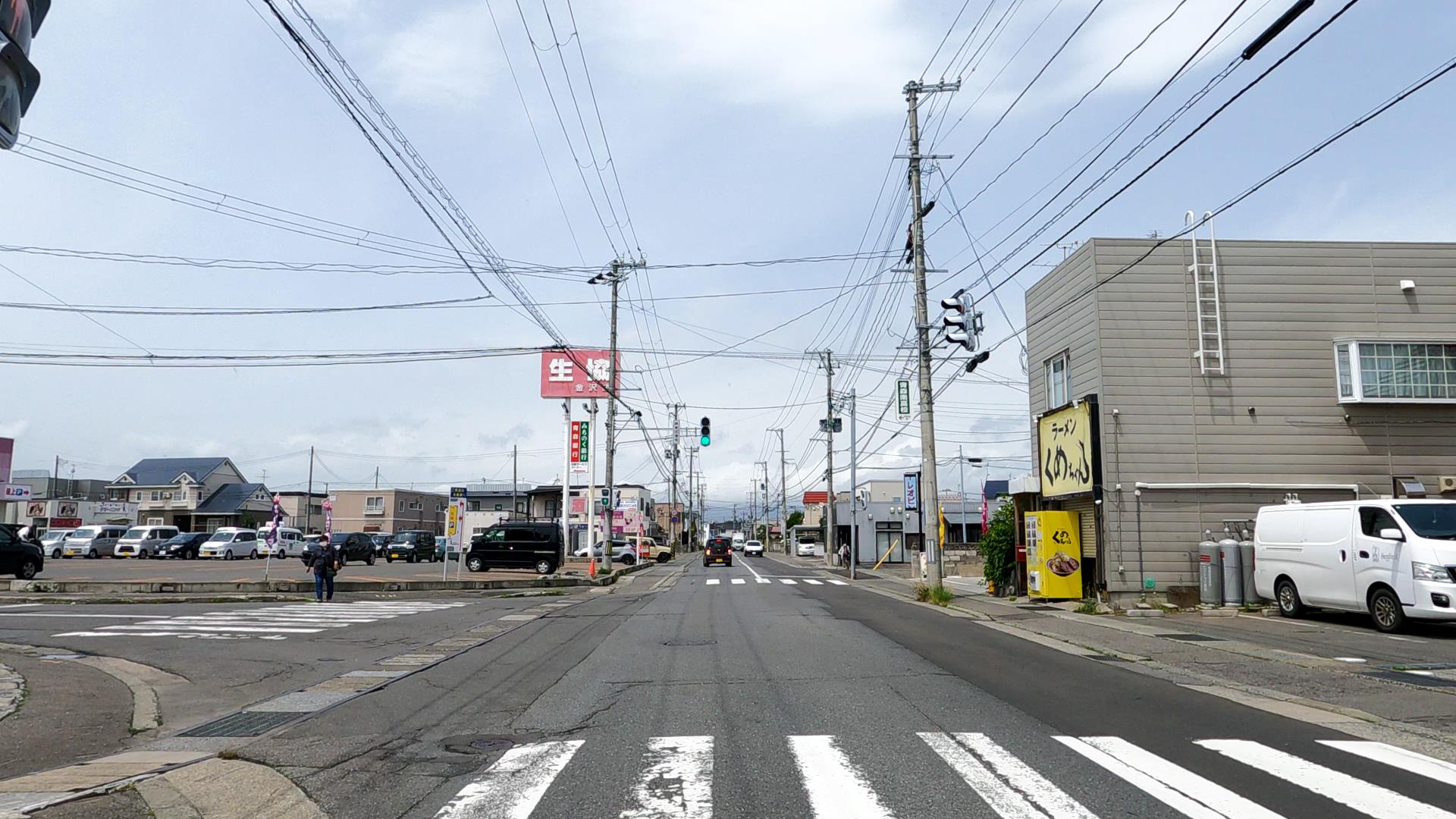 金沢小学校通り、らーめんくめちゃん前の交差点を生協金沢店方面へ進行!