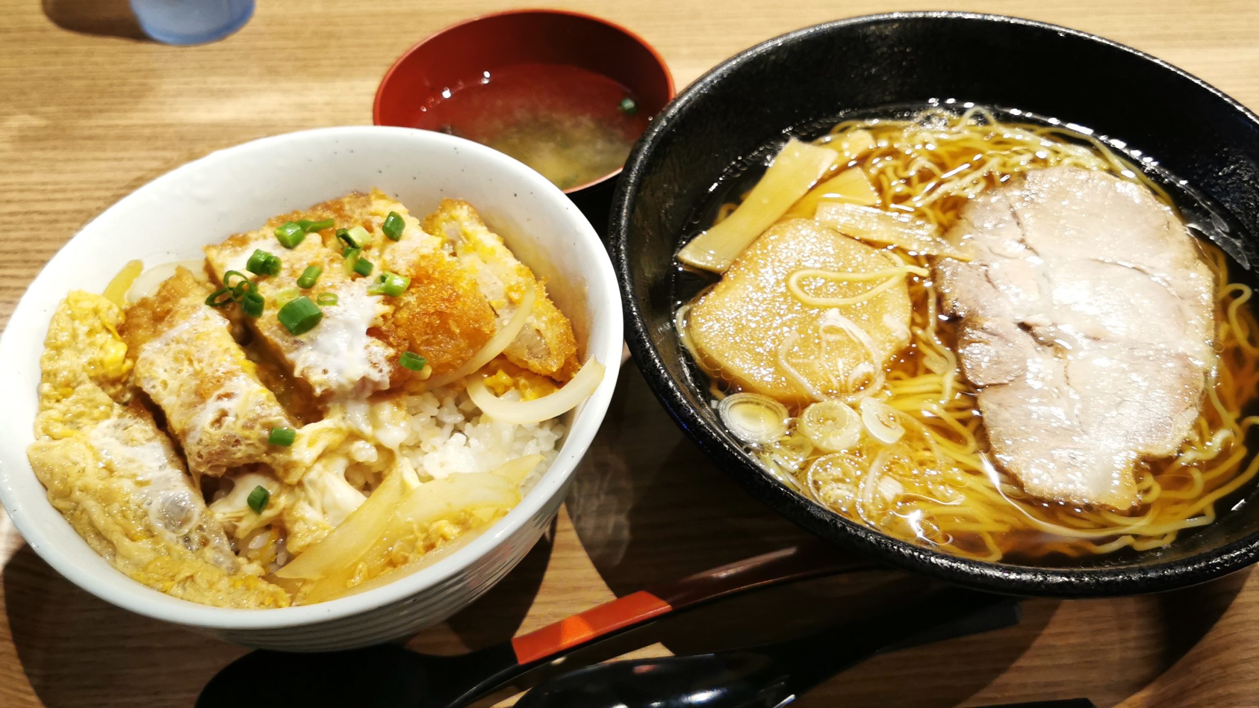 連れは塩ラーメンと牛バラ丼、私は醬油ラーメンとかつ丼をオーダー!