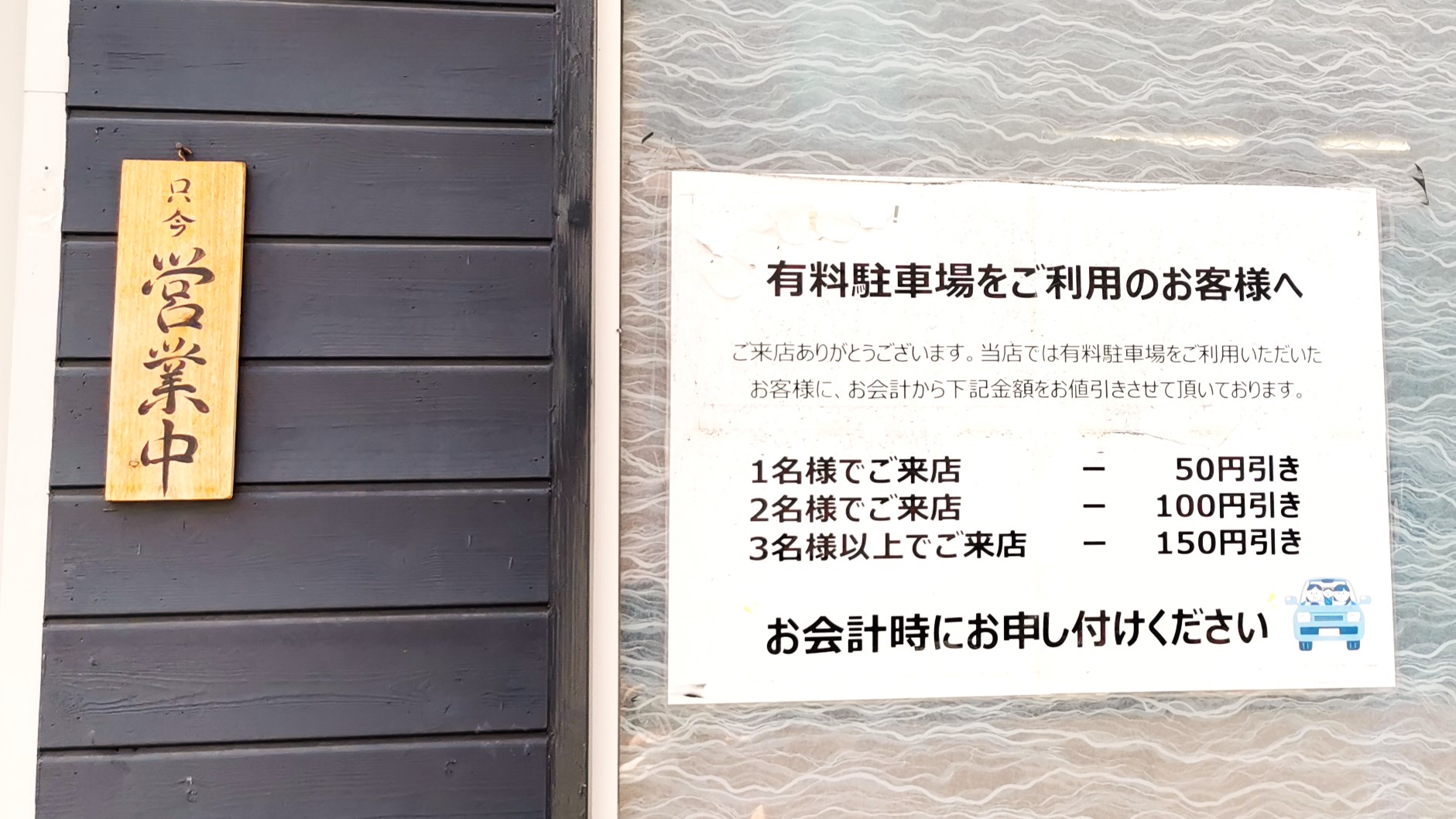 駐車券の提示で割引きになります!