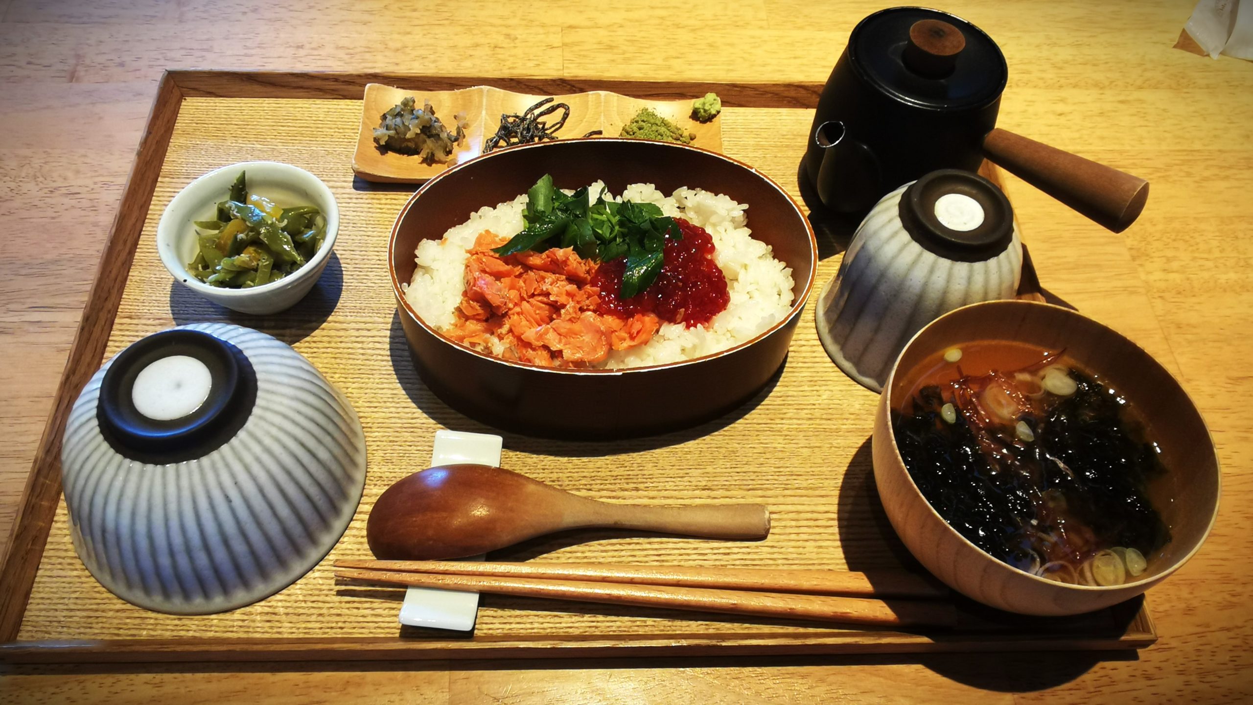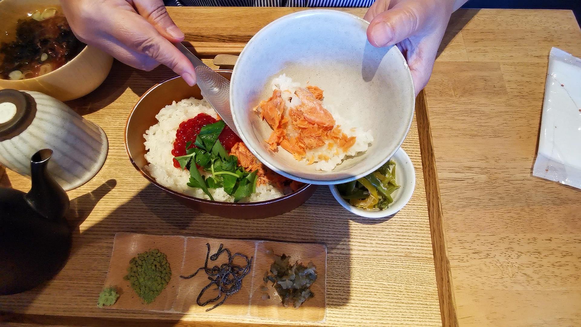 連れはますこと紅鮭わっぱ膳、私は豚丼をオーダー!