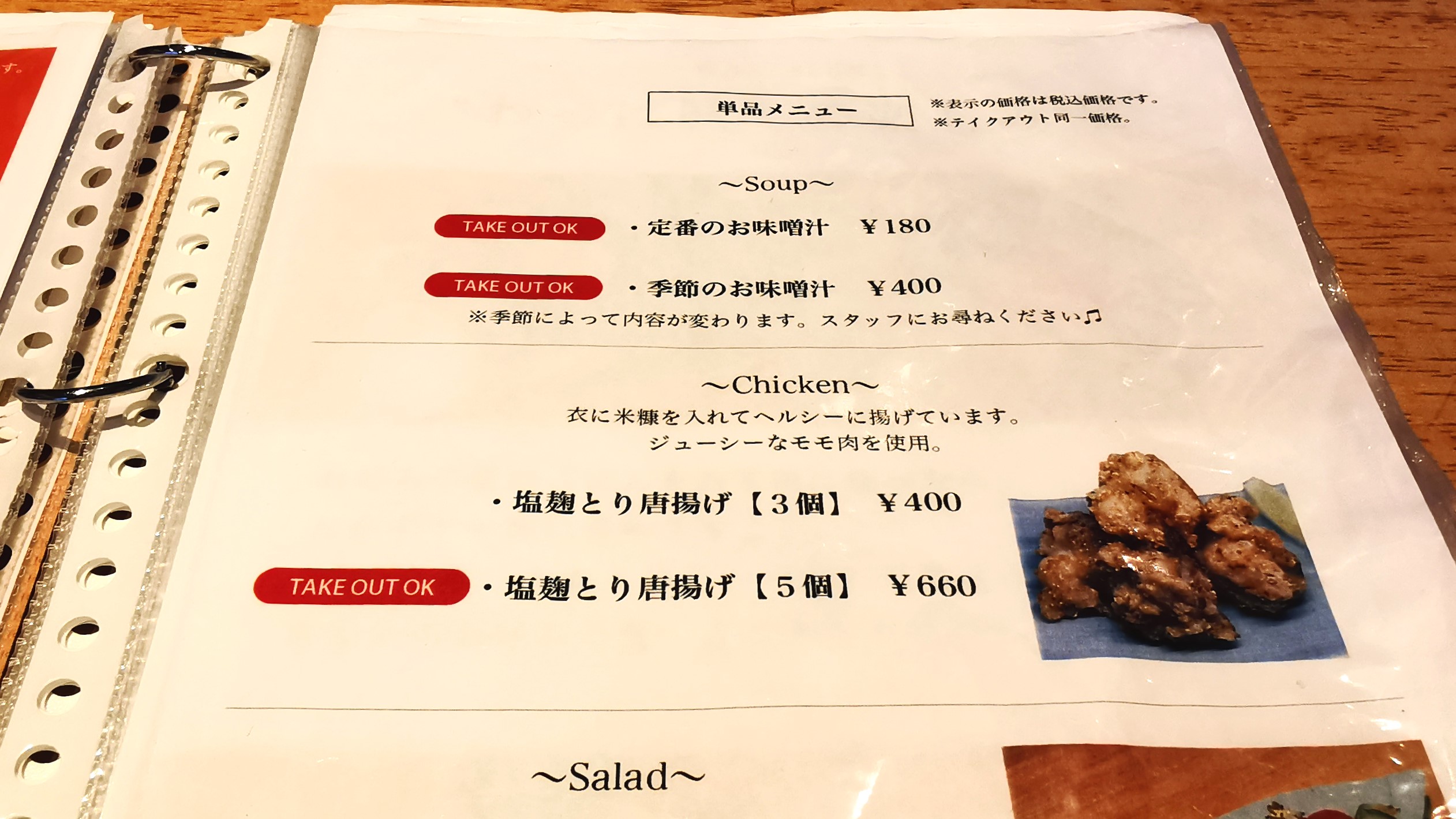 追加の塩麴鶏唐揚げ3個400円です!