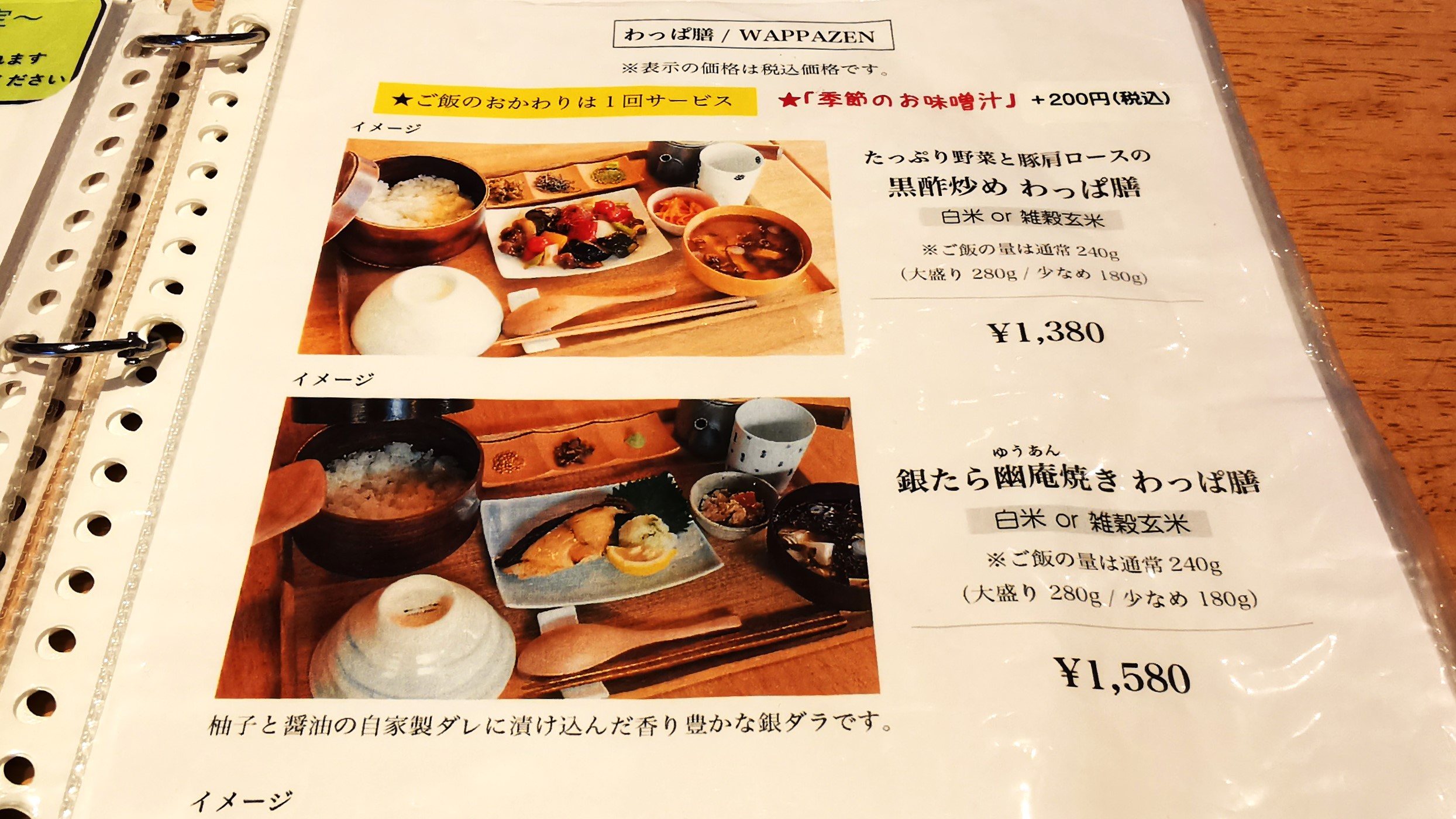 豚丼1160円+季節の味噌汁へ変更200円です!