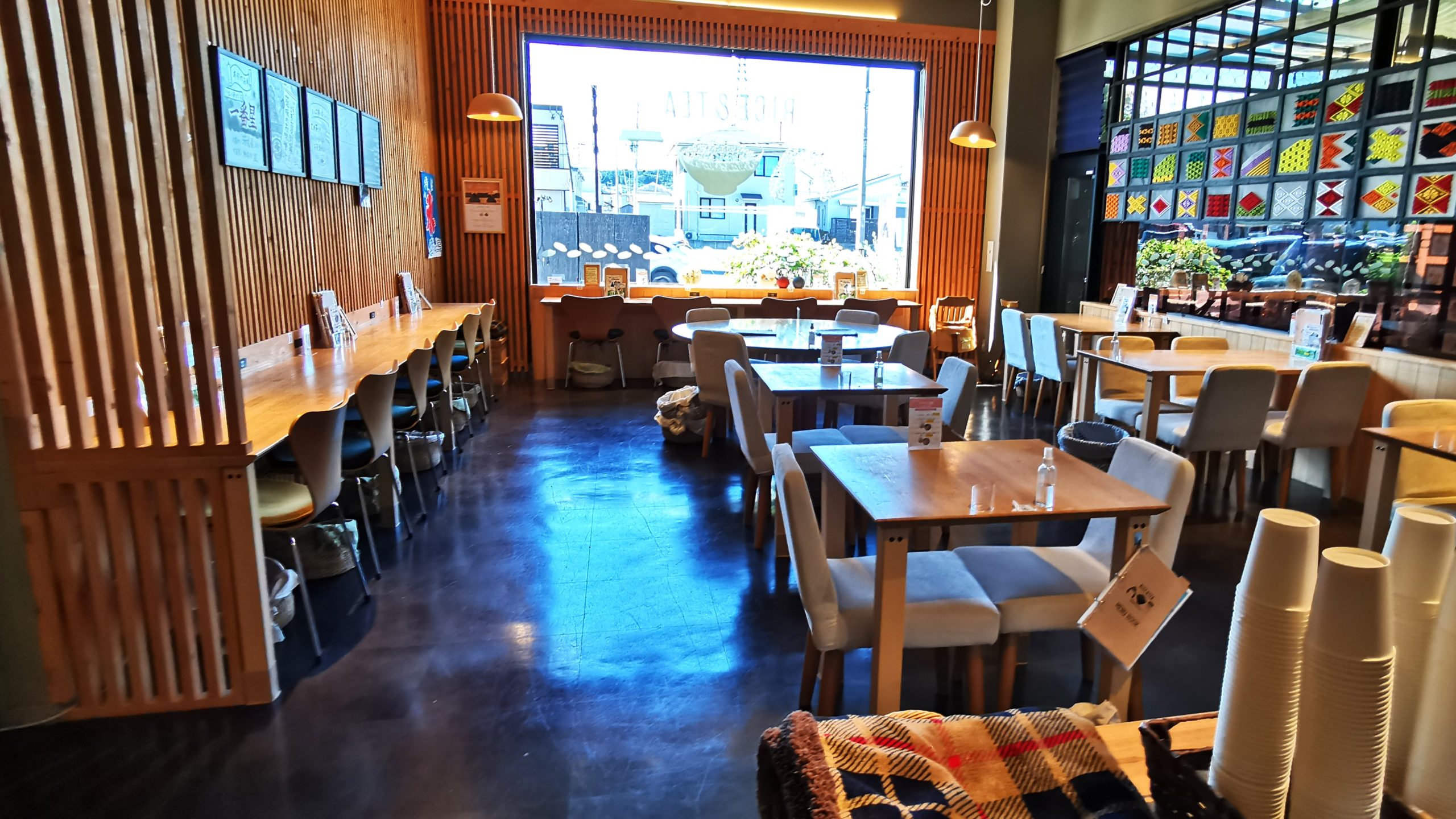 カフェはカウンターとテーブル席で30席ほど!