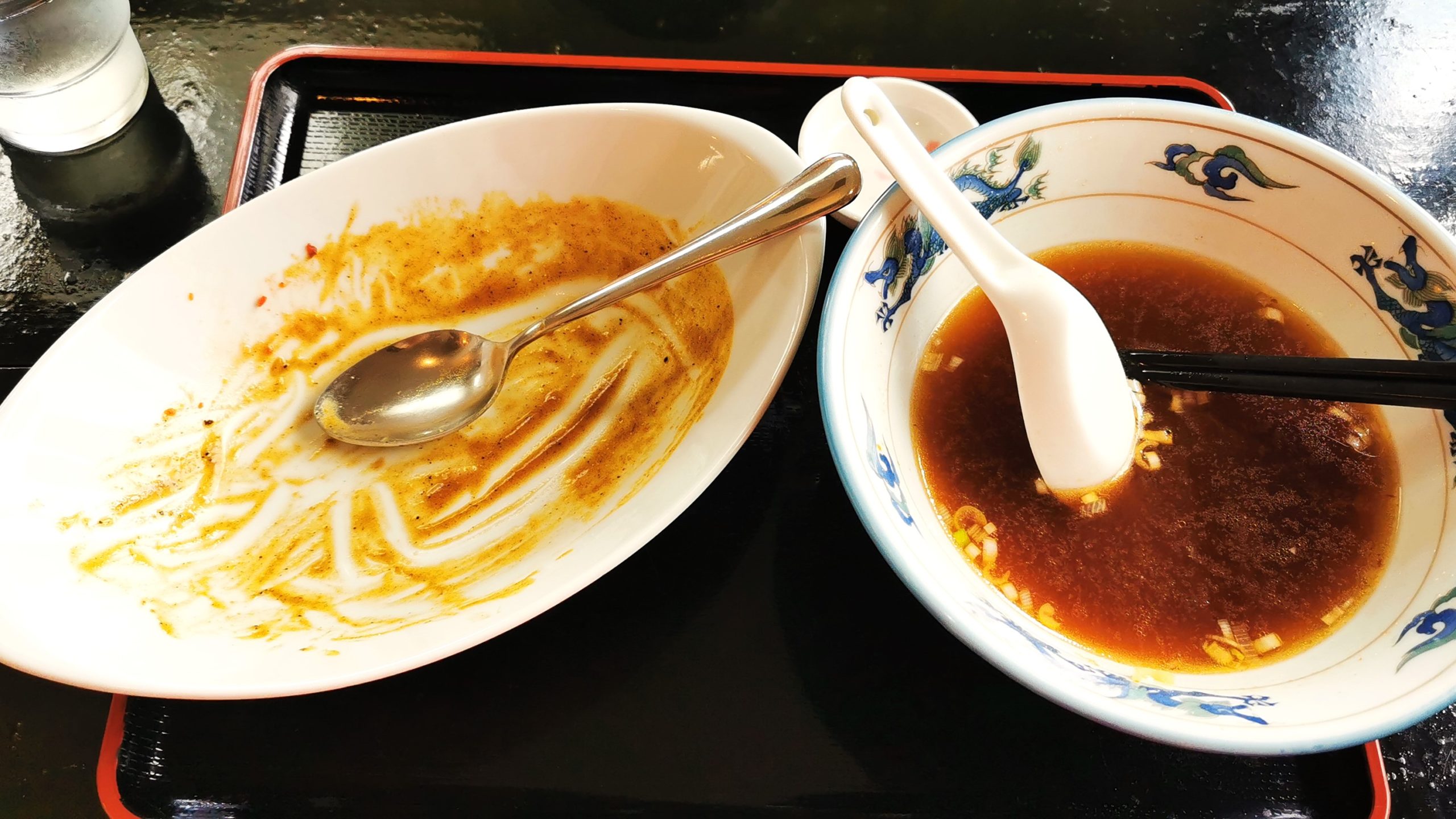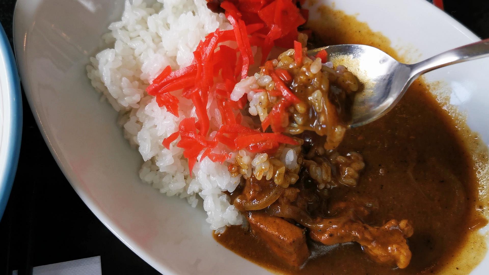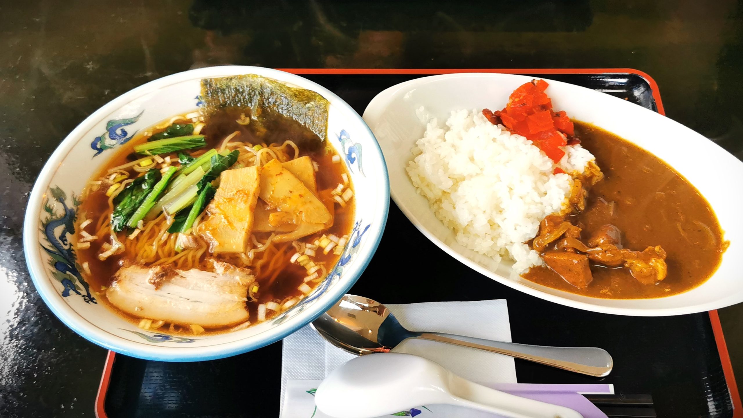 連れは黒酢酢豚定食、私はカレーとラーメンをオーダー!