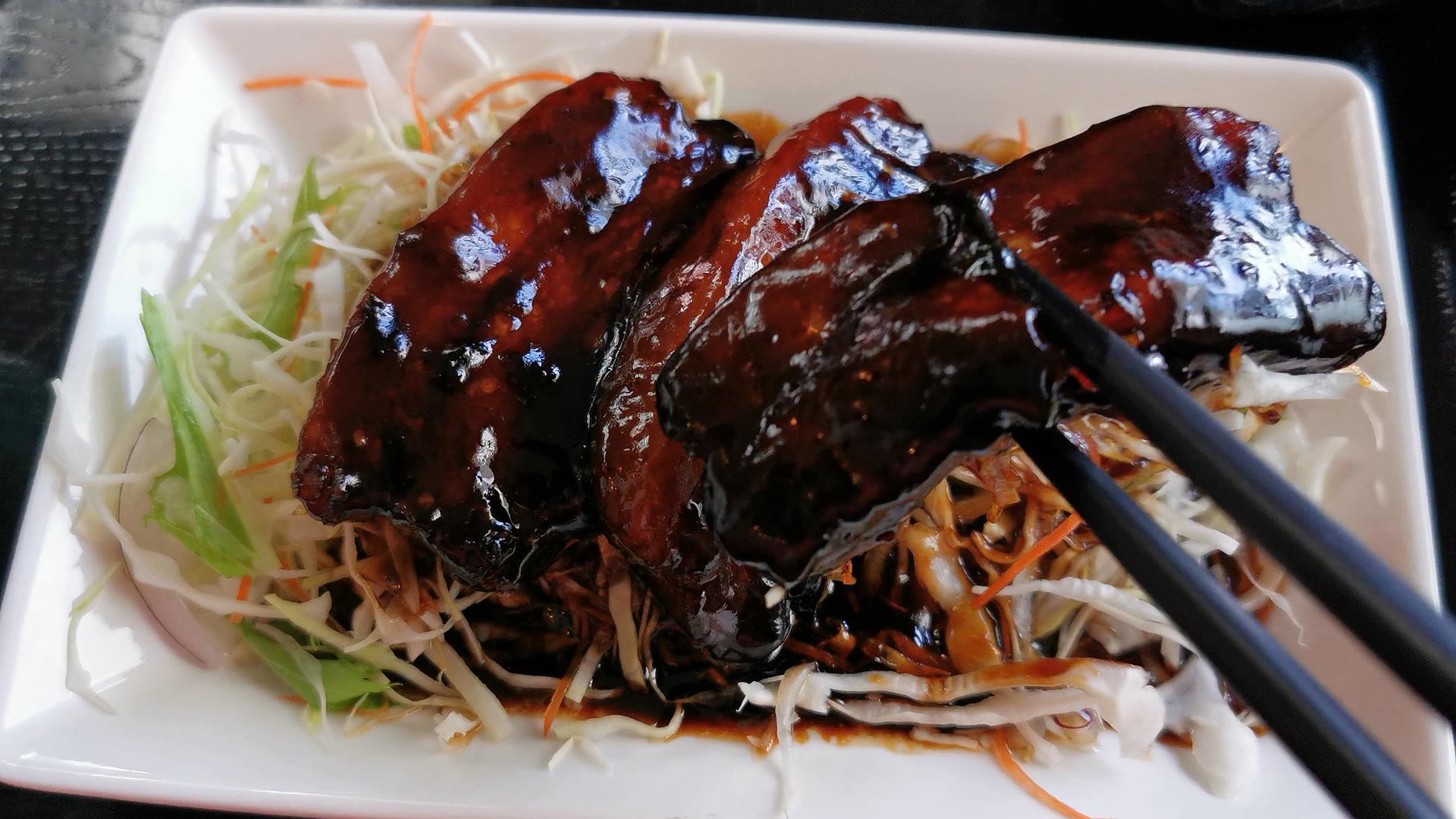 黒酢のコクと甘酸っぱさが白飯に合いますね!