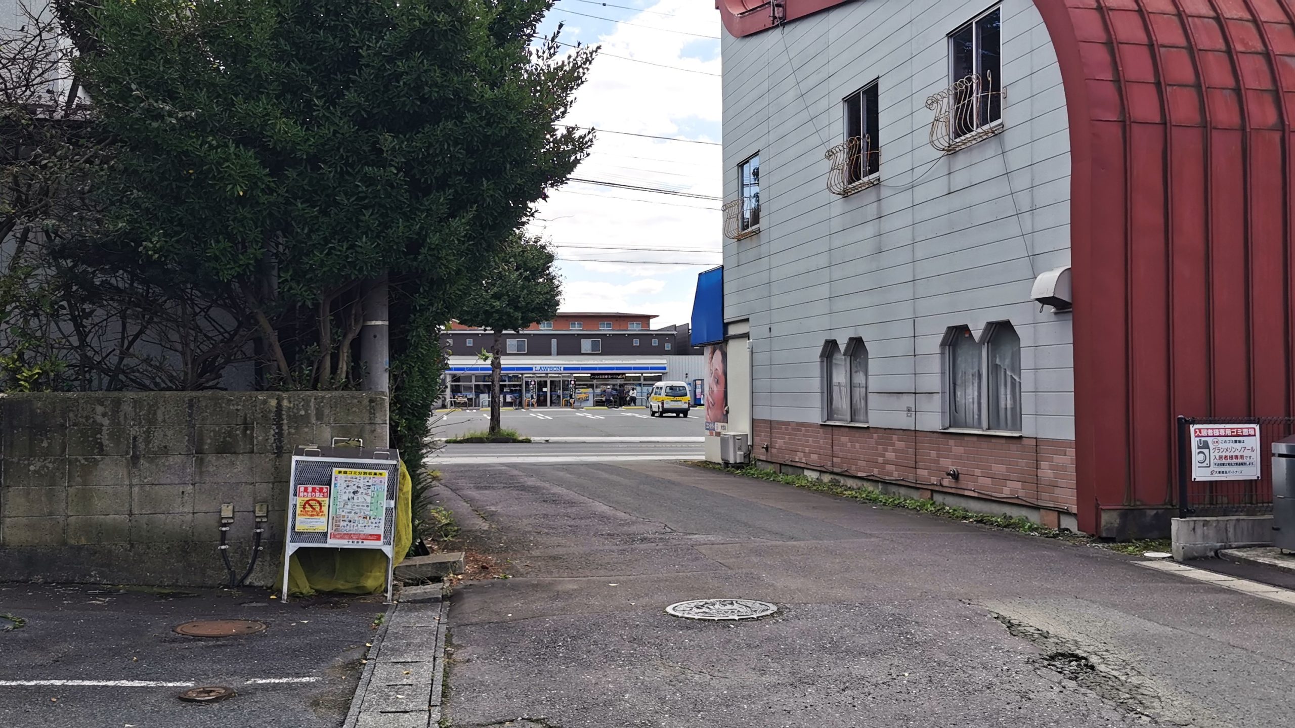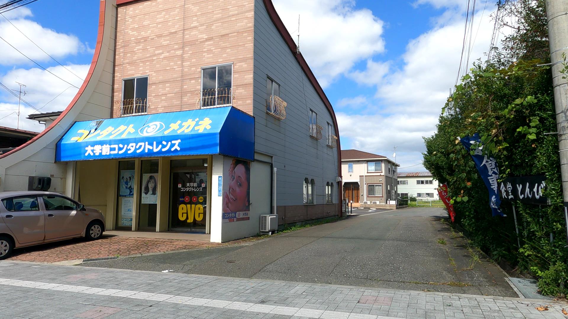 コンビニ向いのメガネ・コンタクトの店の脇を通っていくと!