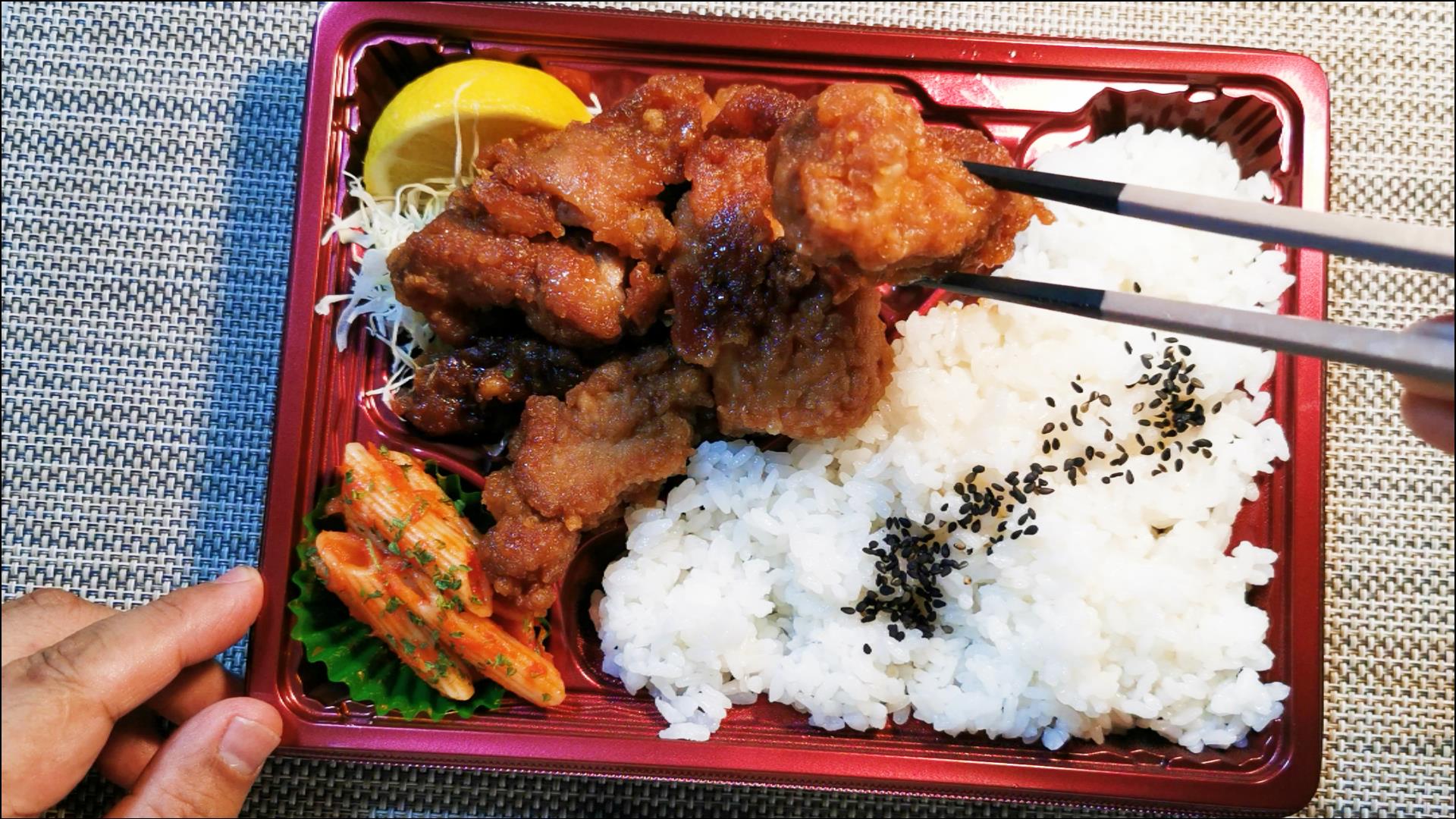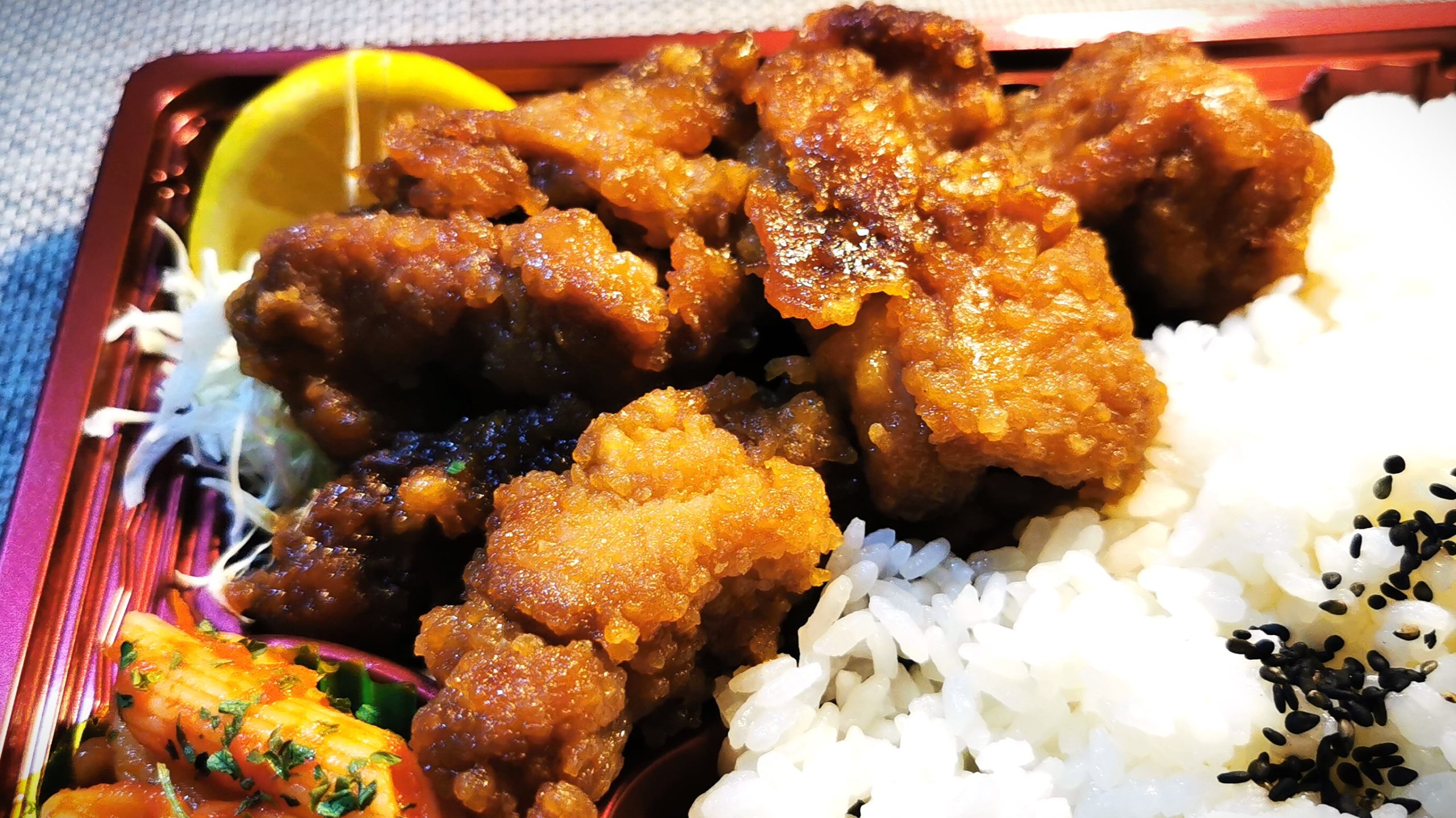 昔ながらの紅屋の甘じょっぱい唐揚げがたくさん入った弁当です!
