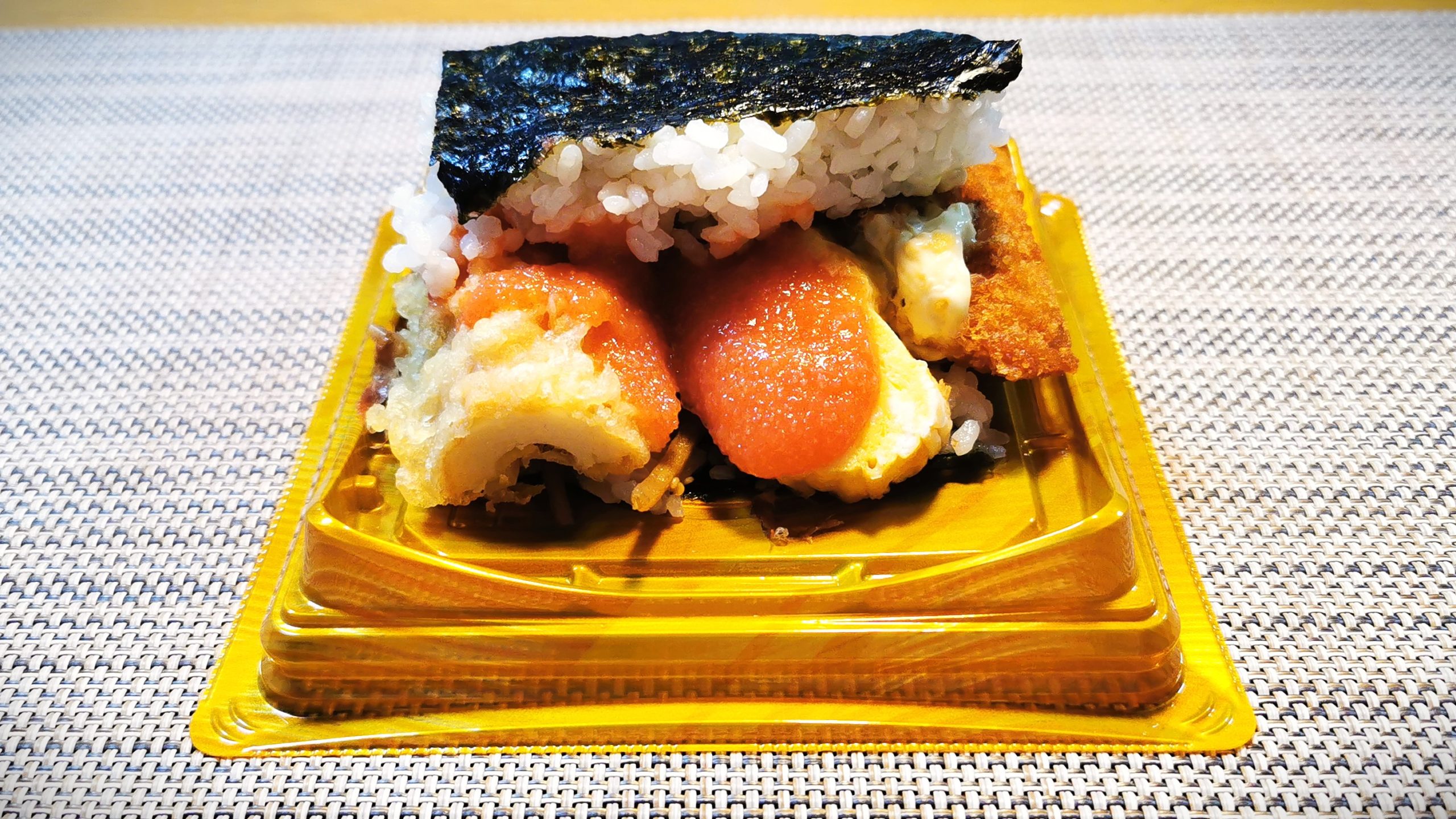 のり弁のオカズがご飯でサンドされています!