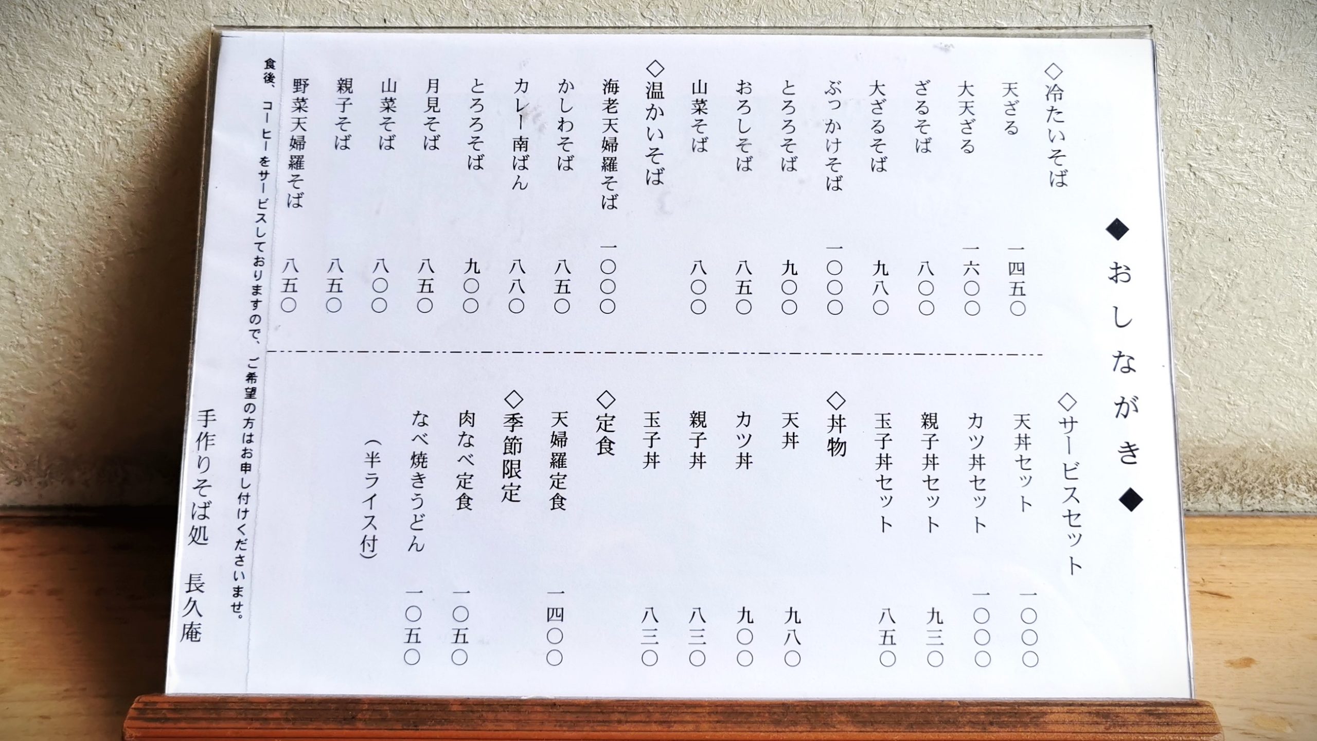 久しぶりに人気の蕎麦屋、長久庵さんにおじゃましました!