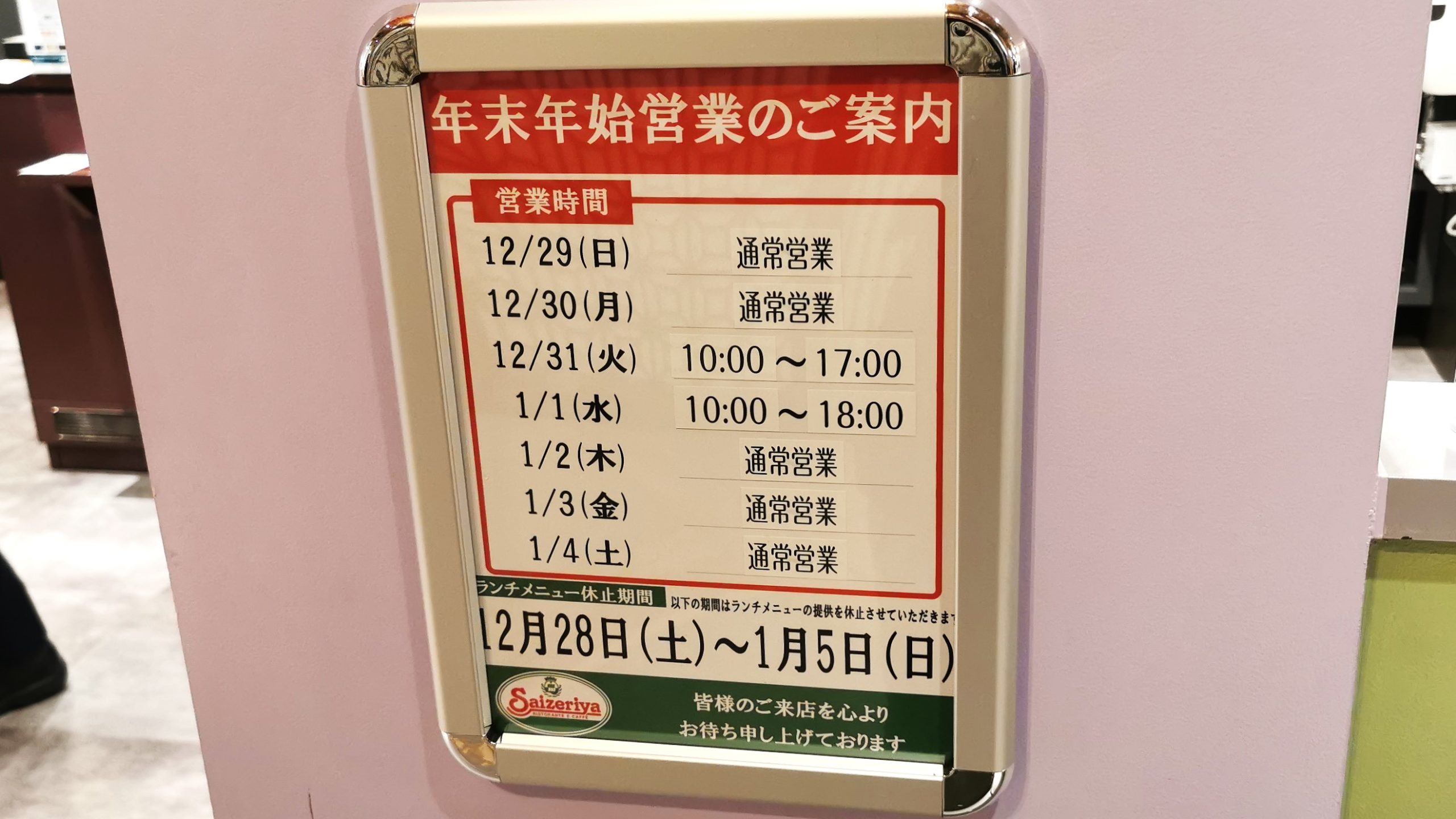 確認時はまだ年末年始の営業時間は決まっていませんでしたが営業するようです!