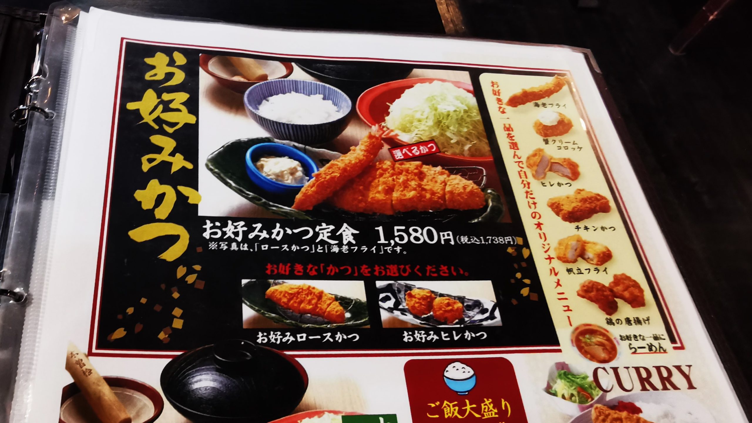 こちらはヒレカツのルーカレー当時1155円です!