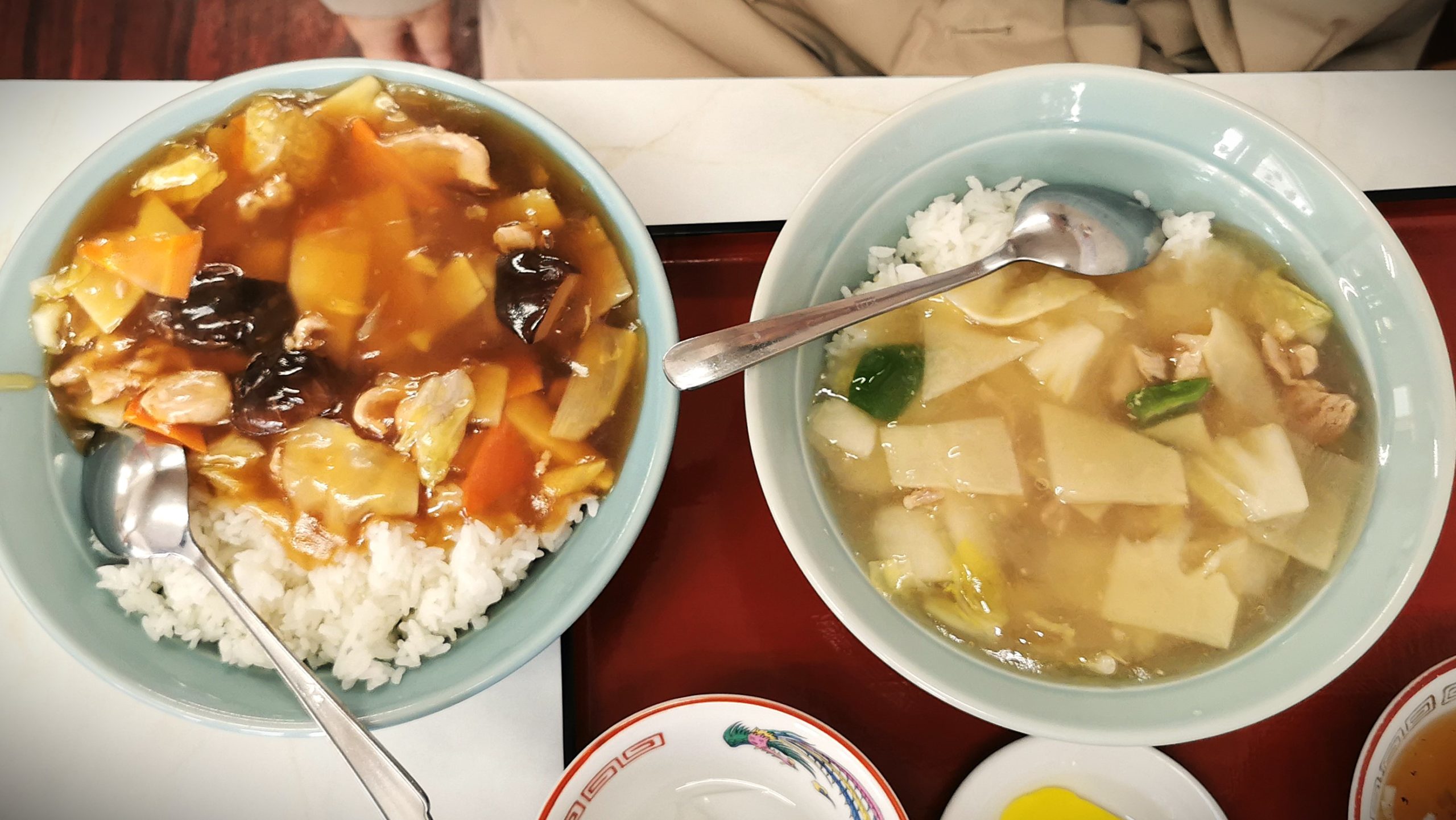 右が普通盛の中華丼です!
