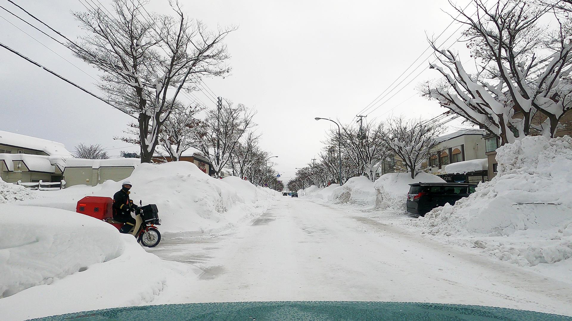 正月休みに入ったので歩道が15㎝くらいの道幅になってる!