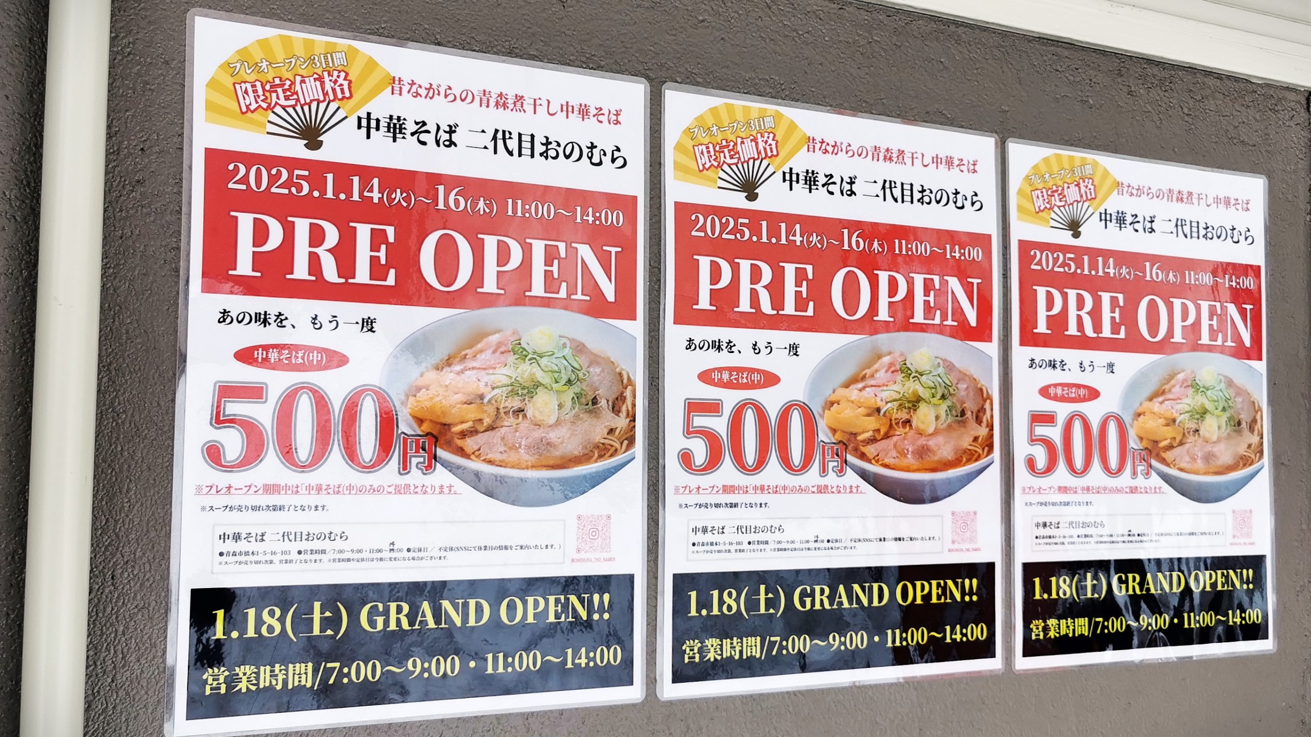 令和7年1月18日にグランドオープンする中華そば 二代目おのむらさんです!