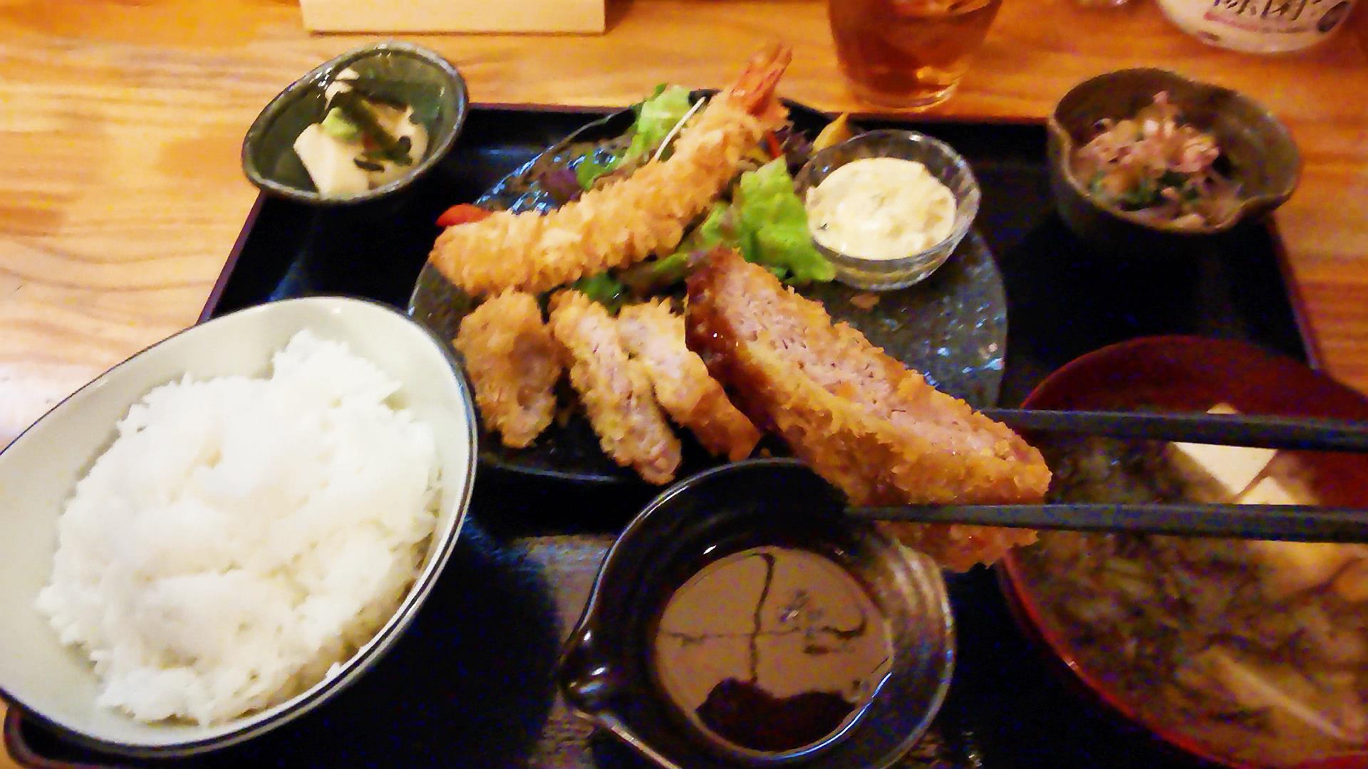 連れは角煮定食、私はエビフライとトンカツ定食をオーダー!