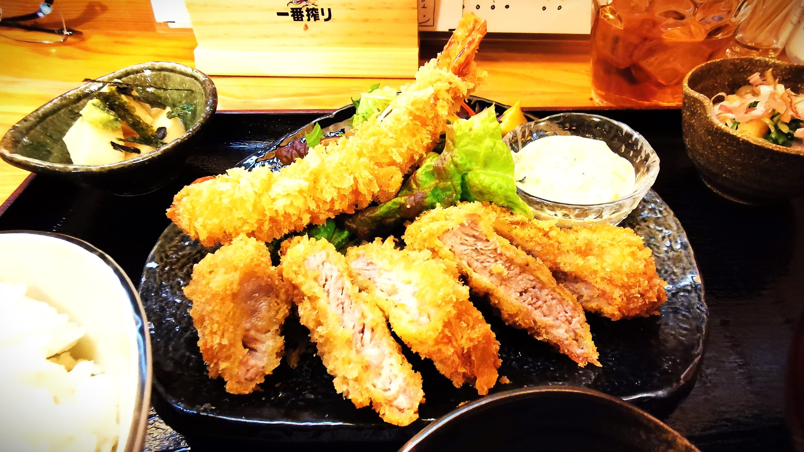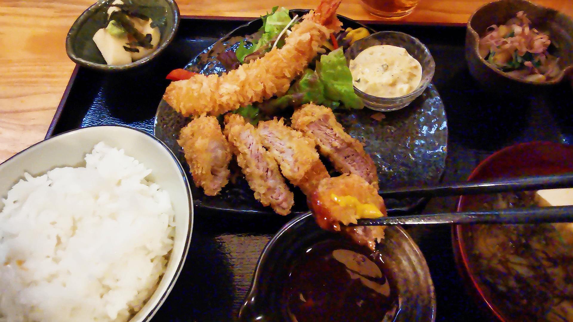 エビフライとカットトンカツ定食1350円です!