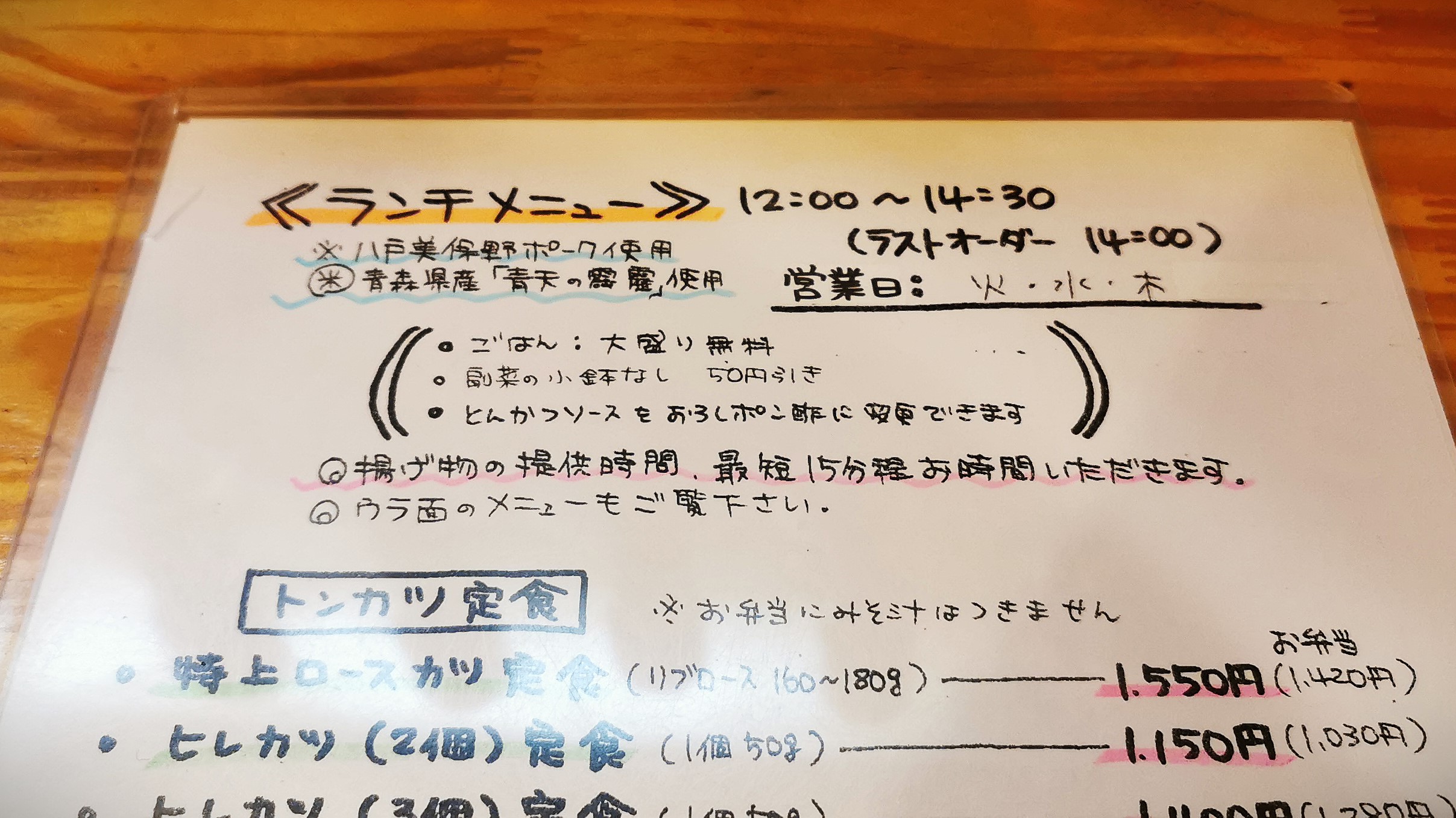 ランチは通常火、水、木!