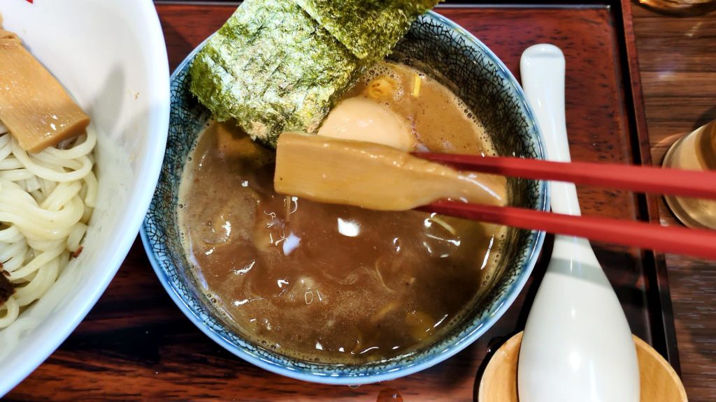 濃厚な鰹だし(?)のつけ汁は味も濃い目!