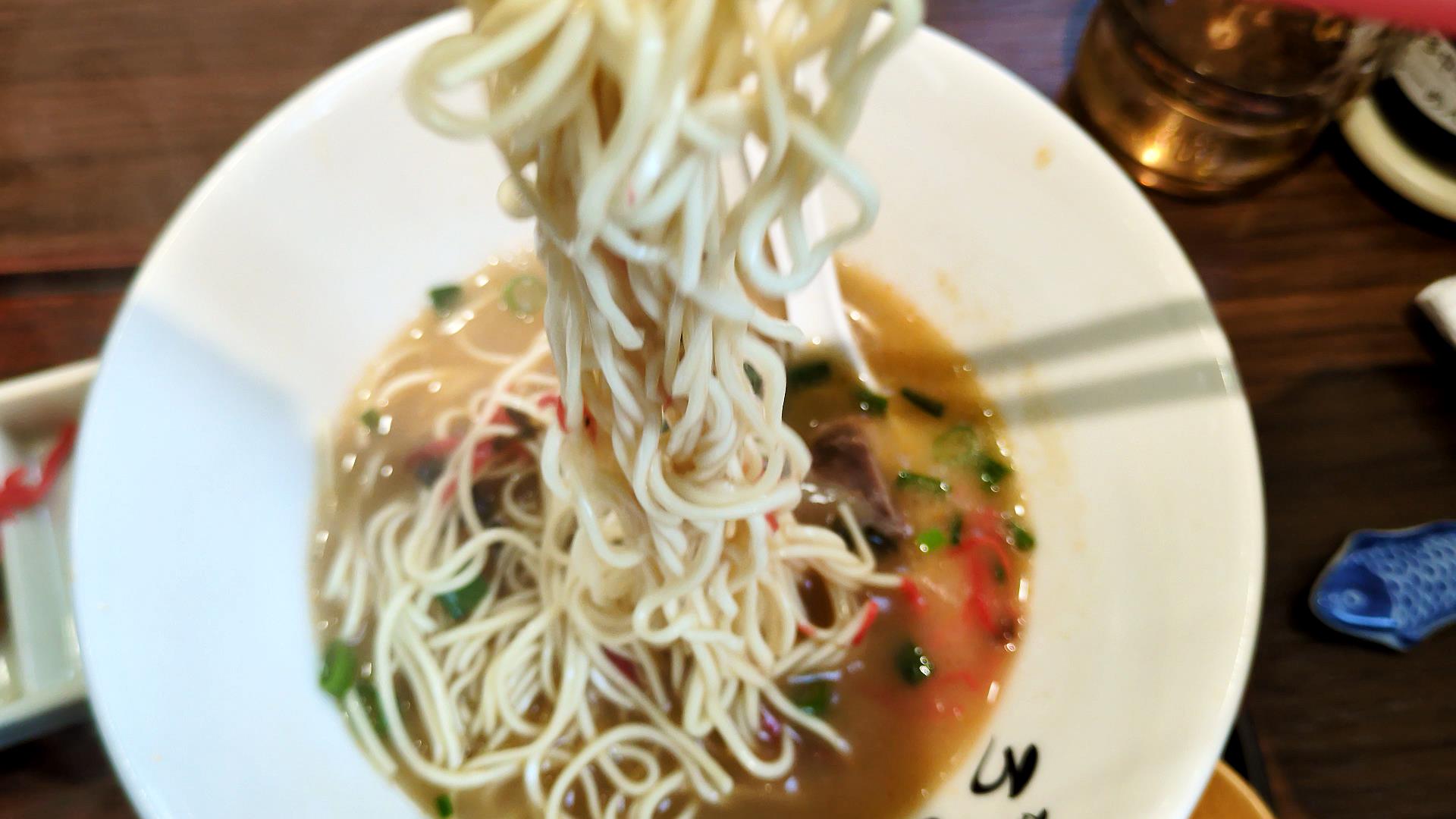 博多ラーメン特有の白い細ストーレート麺!