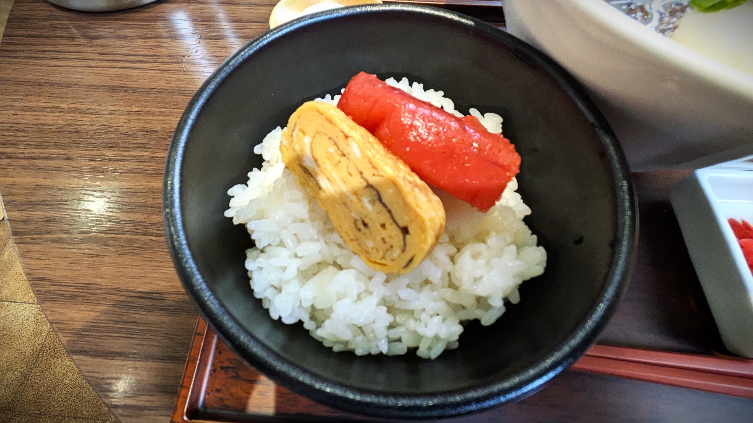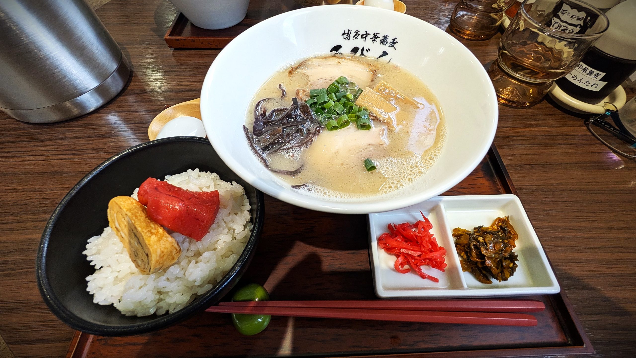 連れはつけ麺の中、私は博多中華蕎麦と明太玉子ごはんをオーダー!