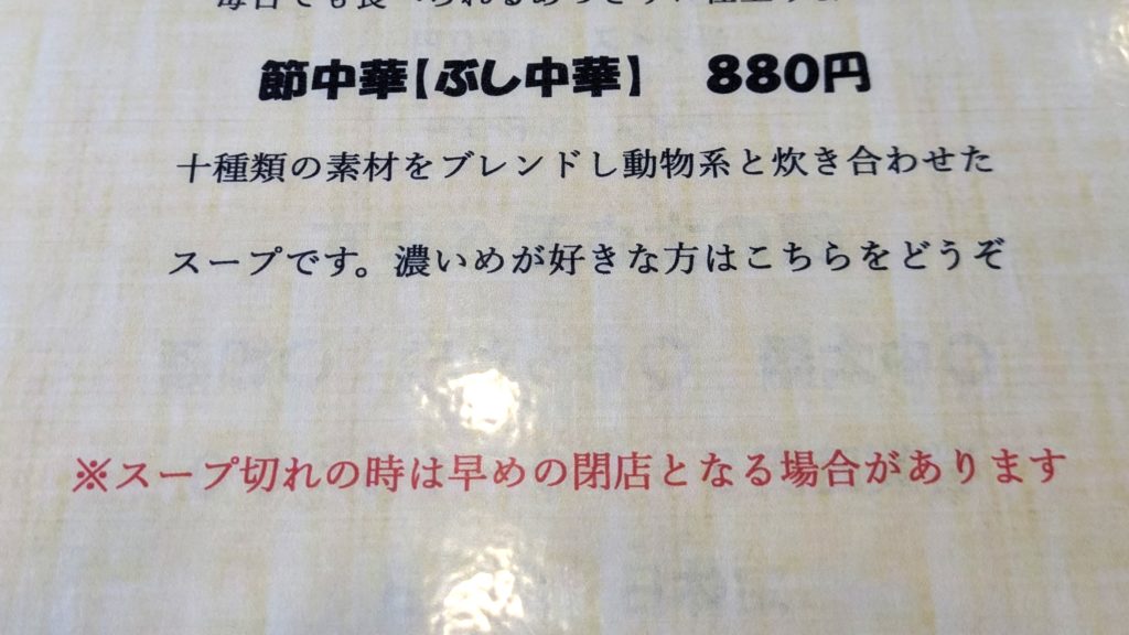 こちらは節中華880円+煮卵100円!
