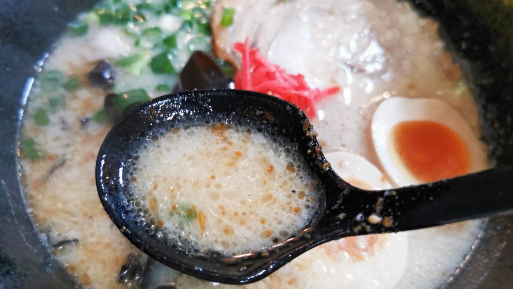 おいしそうな豚骨ラーメン、辛いニラ付きです!