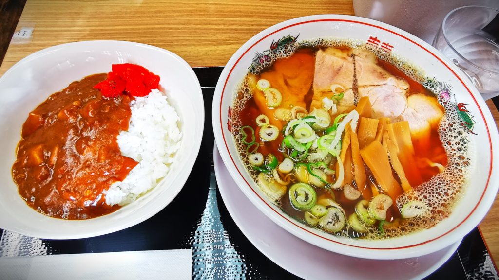 連れは塩とんこつ、私は中華そばミニカレーのセットをオーダー!