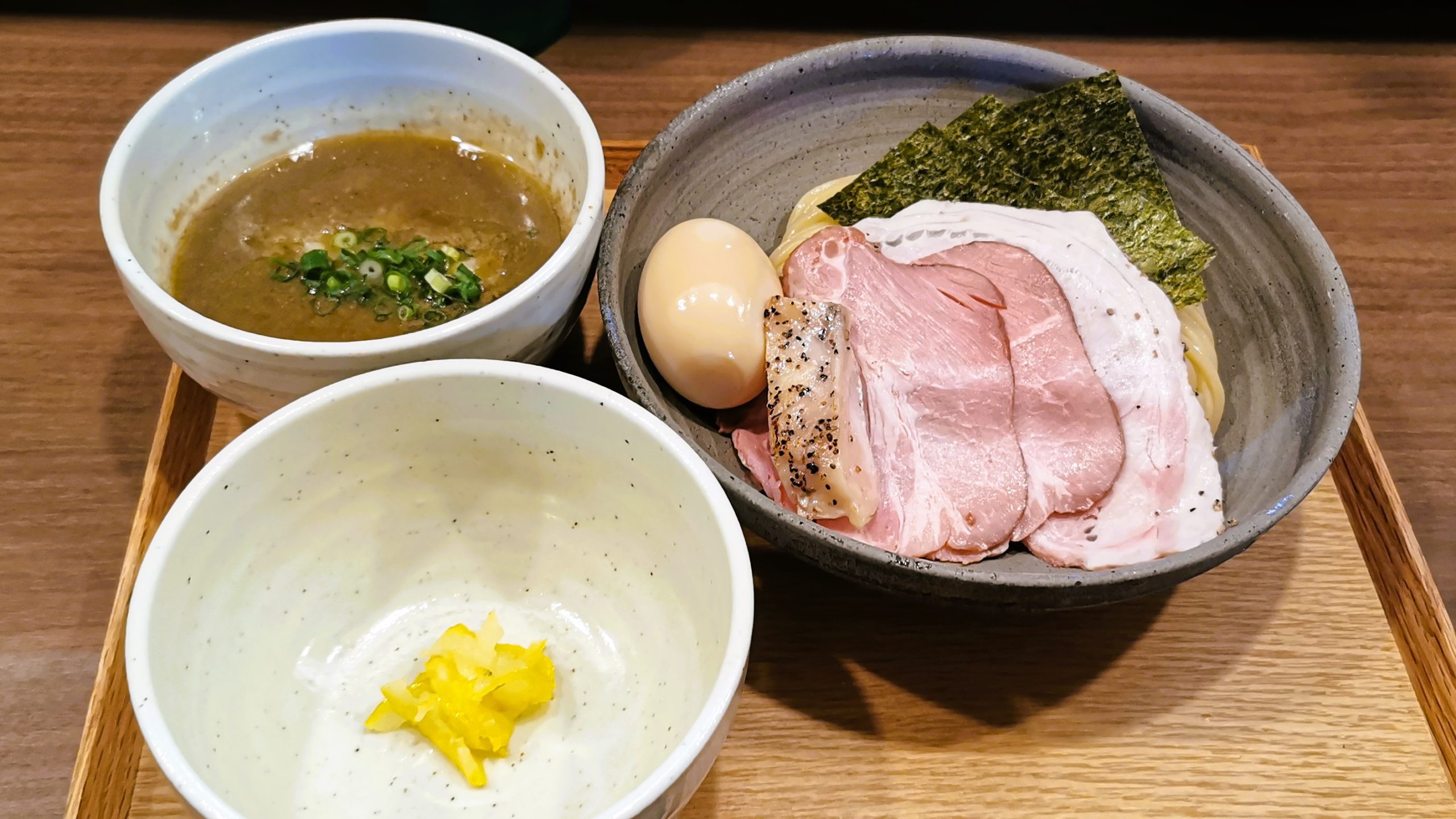 連れは特製煮干しつけそば、私は特製醤油つけそばをオーダー!