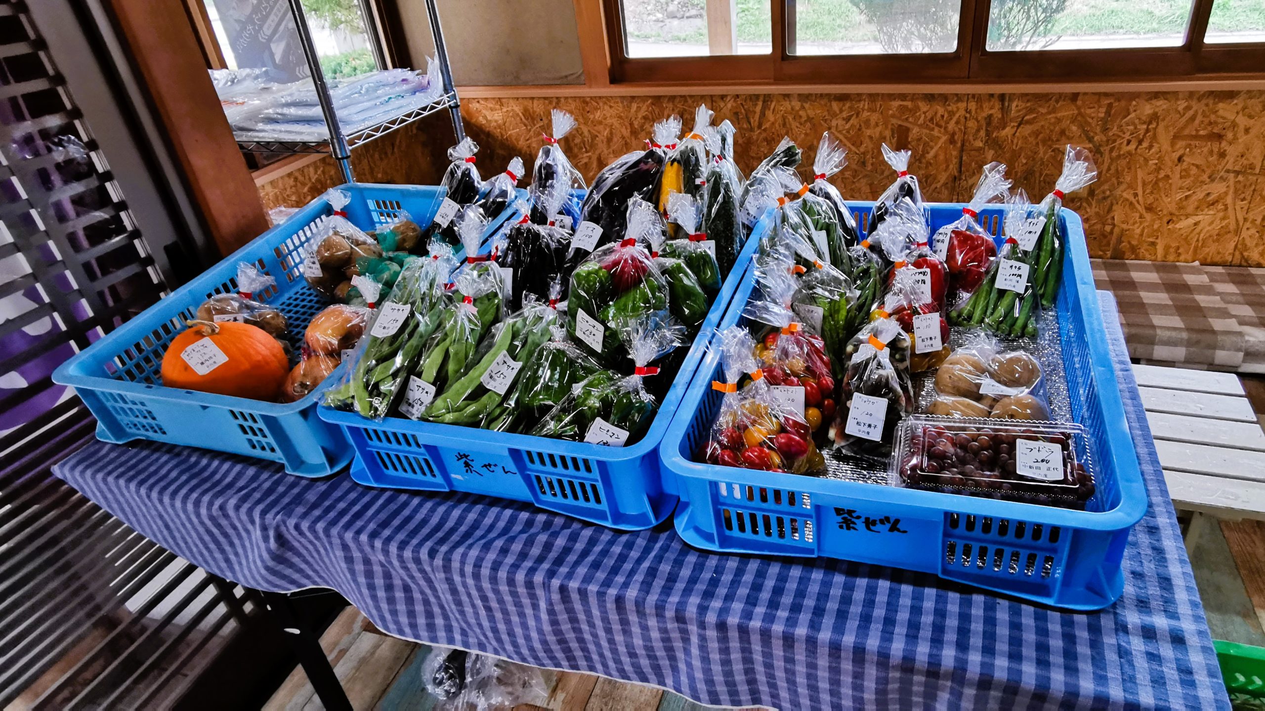 店内では新鮮な地物野菜の販売!