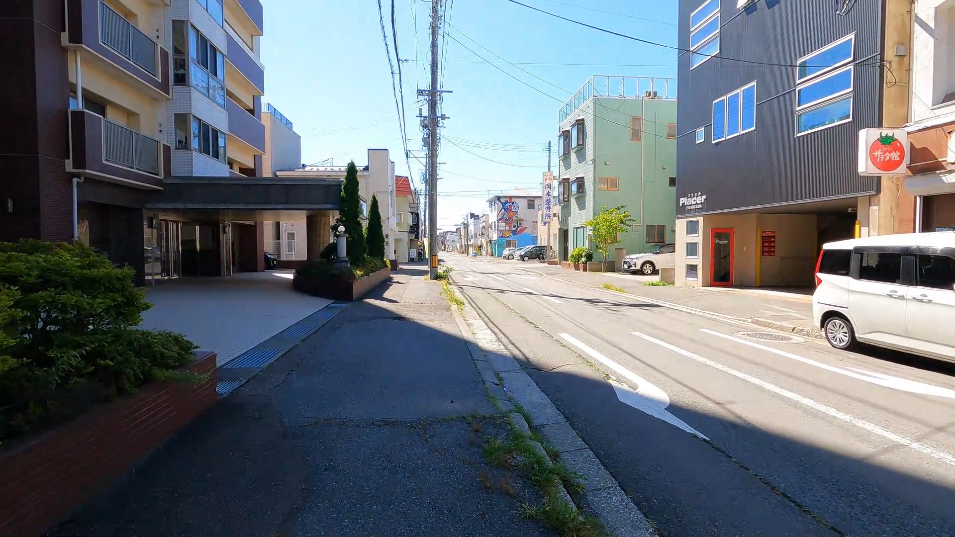 シネマディクト前の交差点を渡って岡本整骨院の通りへ!