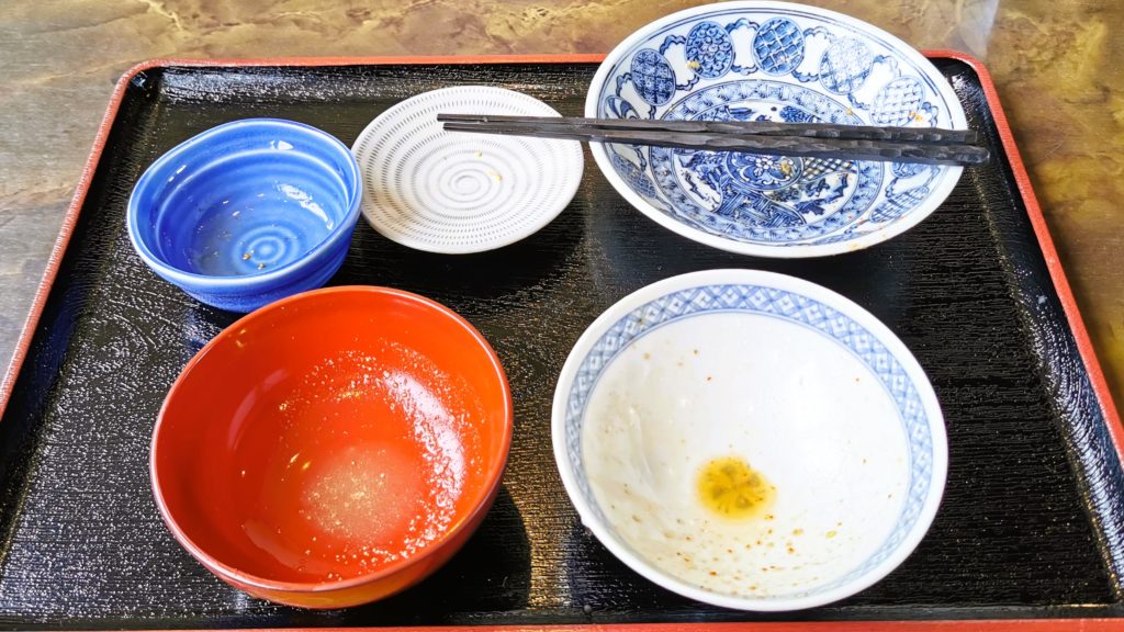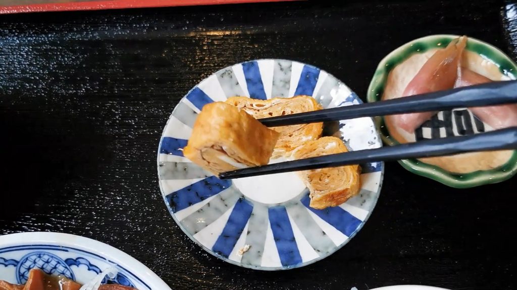 店員さんに食券を渡したらまず小鉢の玉子焼きを選びます!