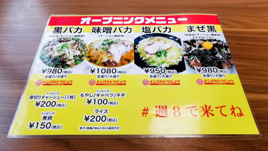 今回は令和7年12月17日にオープンしたメンバカドウジョウさんにおじゃましました!見た目と違ったマイルドなスープがおいしかったです!