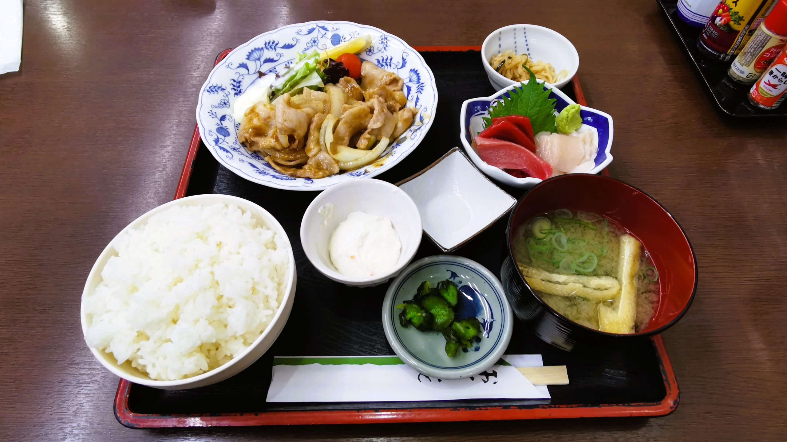 源タレしょうが焼き定食980円+本日のミニ刺身600円です!