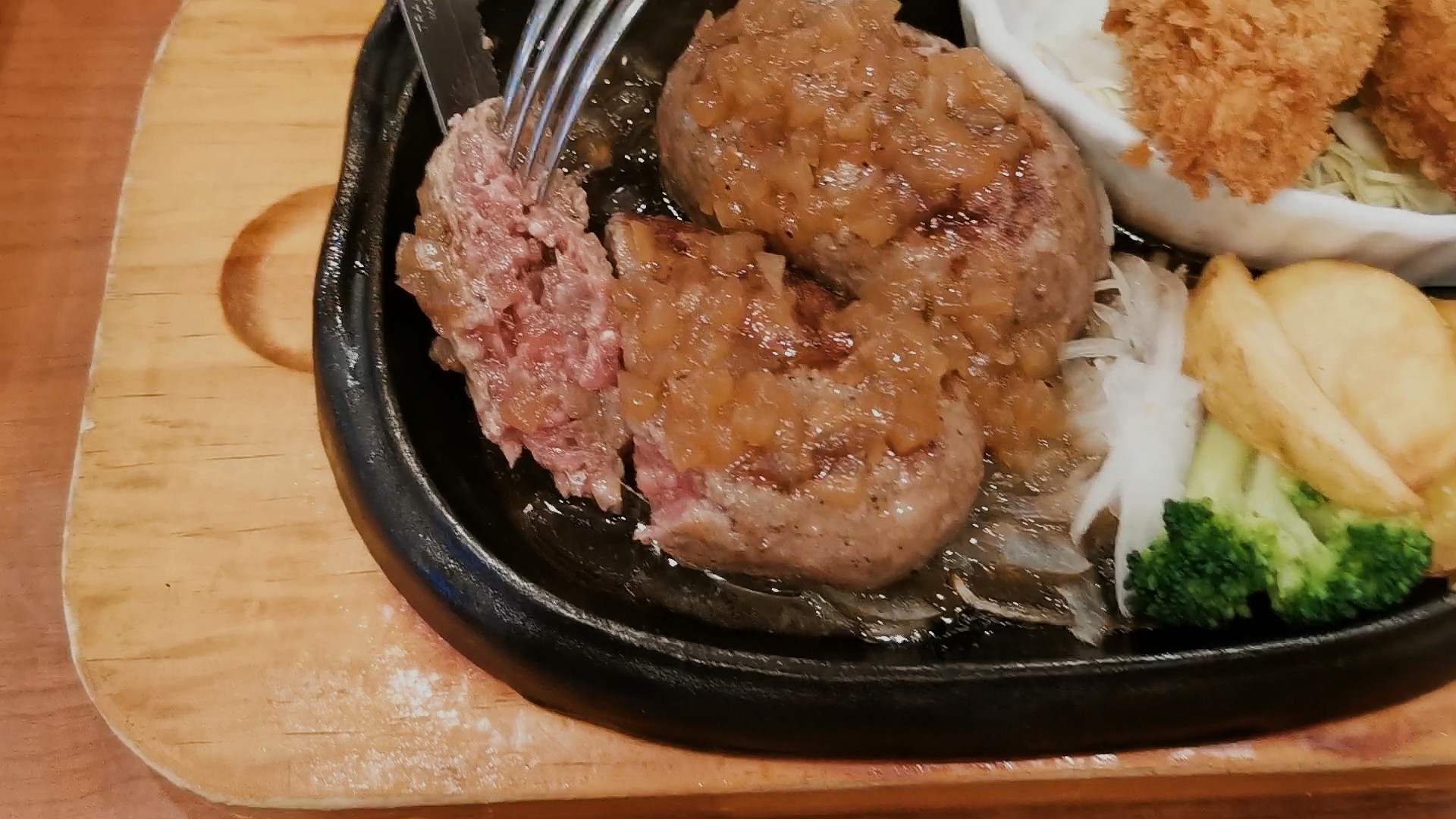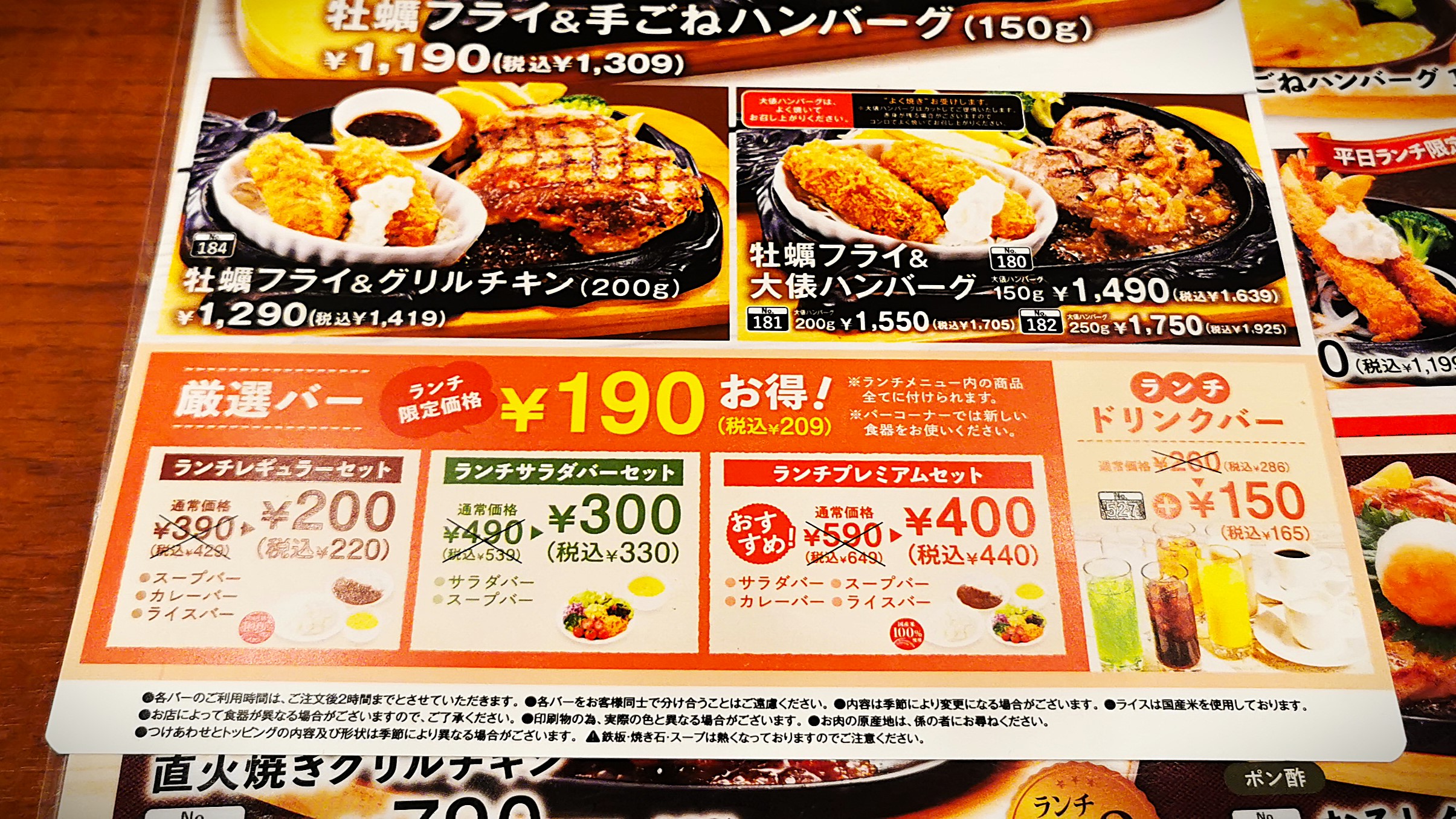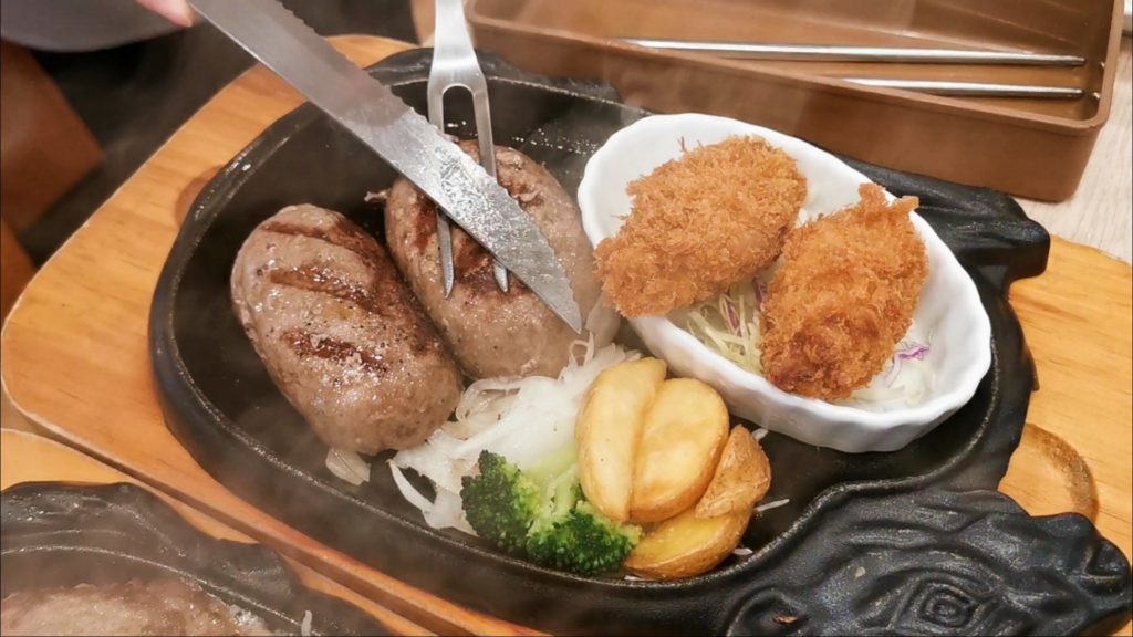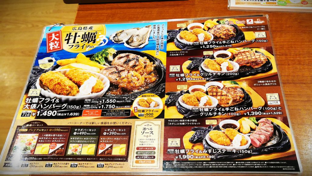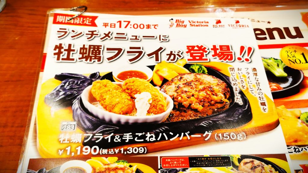 連れはカキフライ&大俵ハンバーグ200g私は手ごねハンバーグ300gをオーダー!