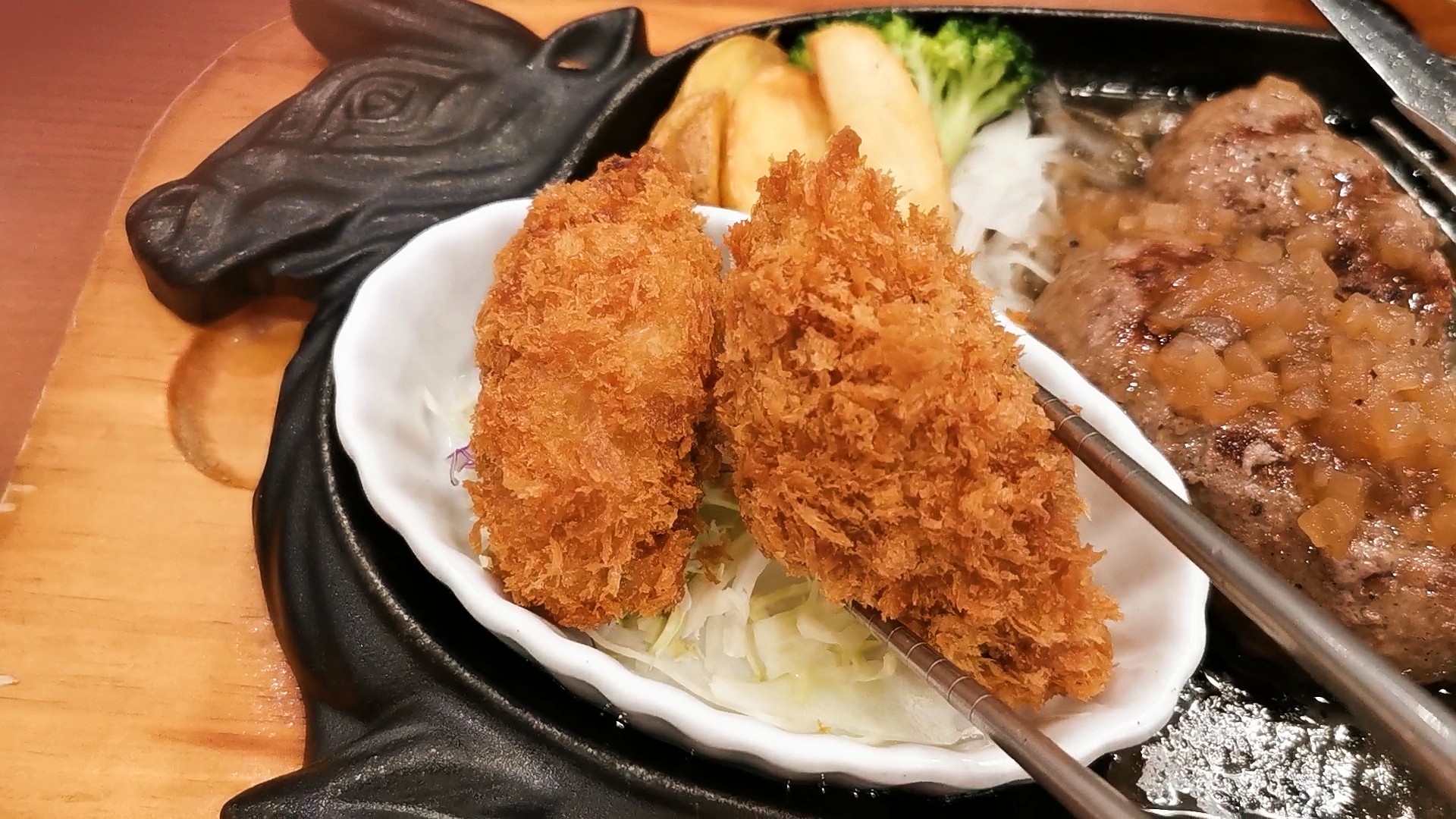 カキフライ&大俵ハンバーグ200g1705円(税込)です!