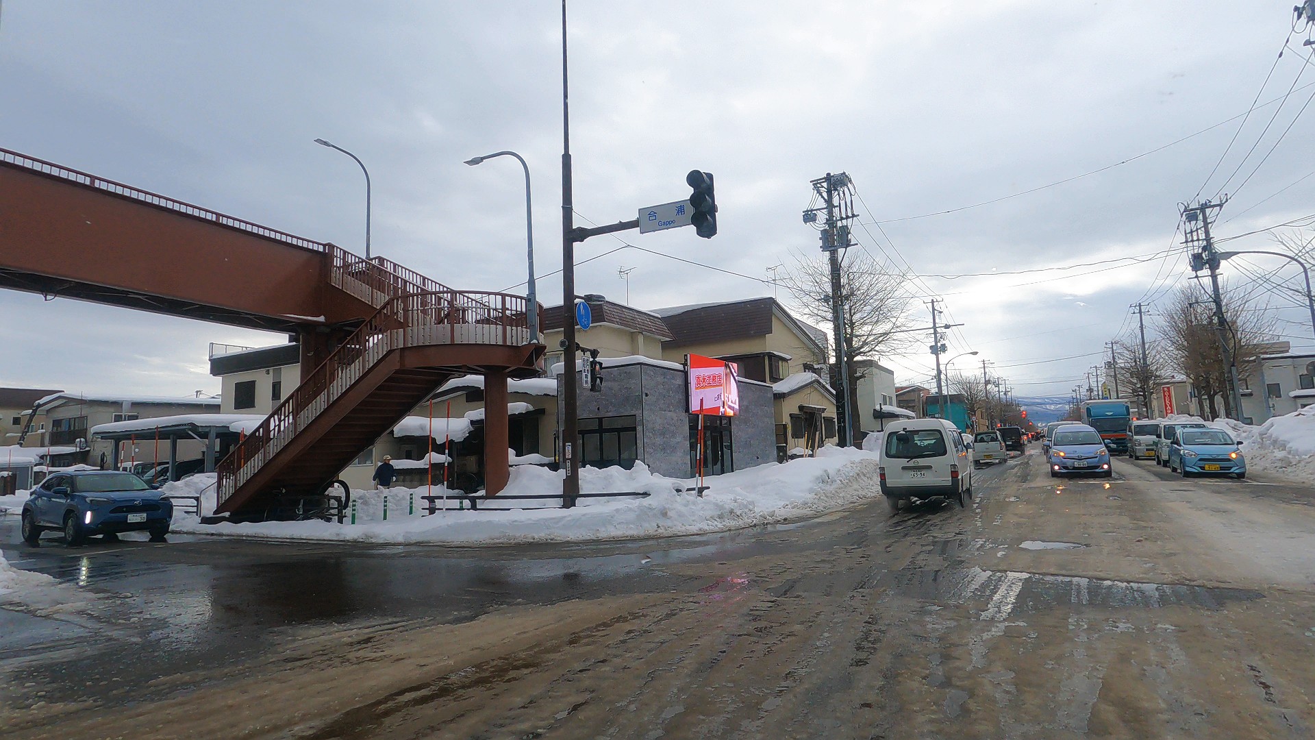 合浦の歩道橋前を右折して明けの星高校通りへ!
