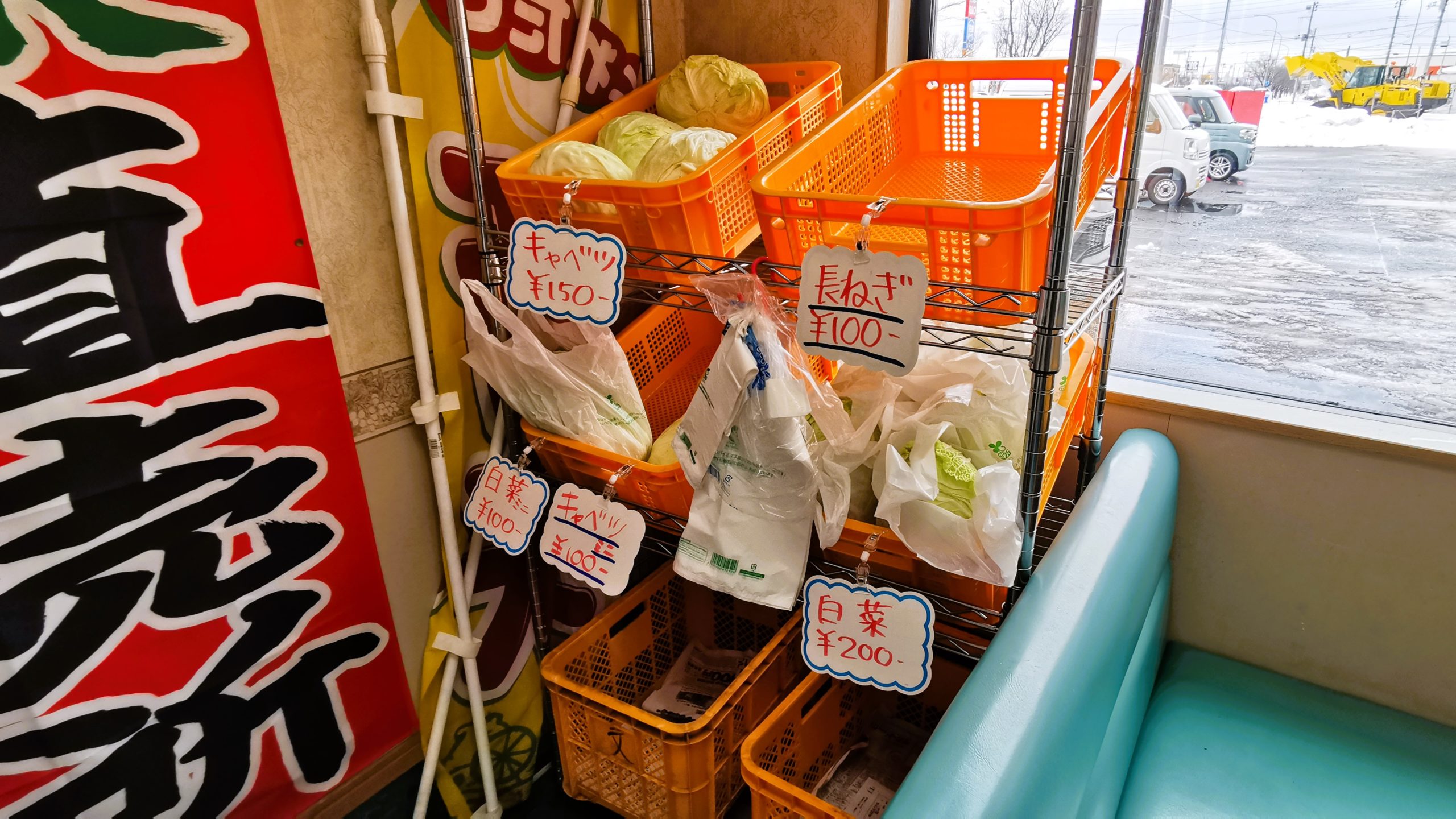 ベンチシートの隣りには野菜が売っていました!