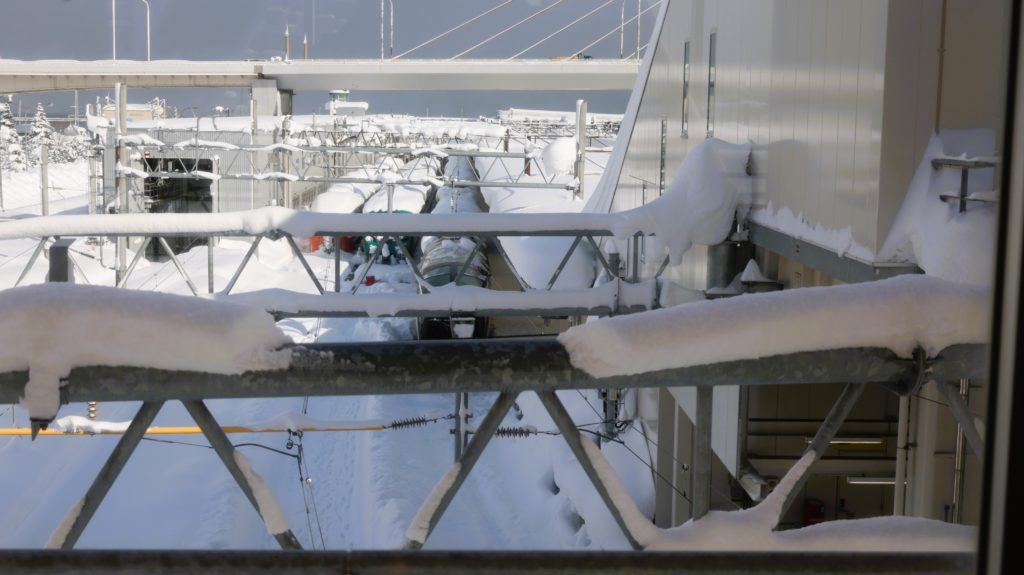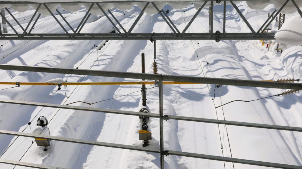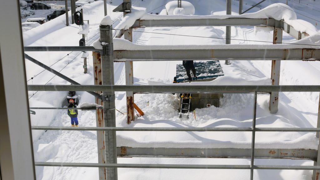 線路にびっしり雪が積もってます!