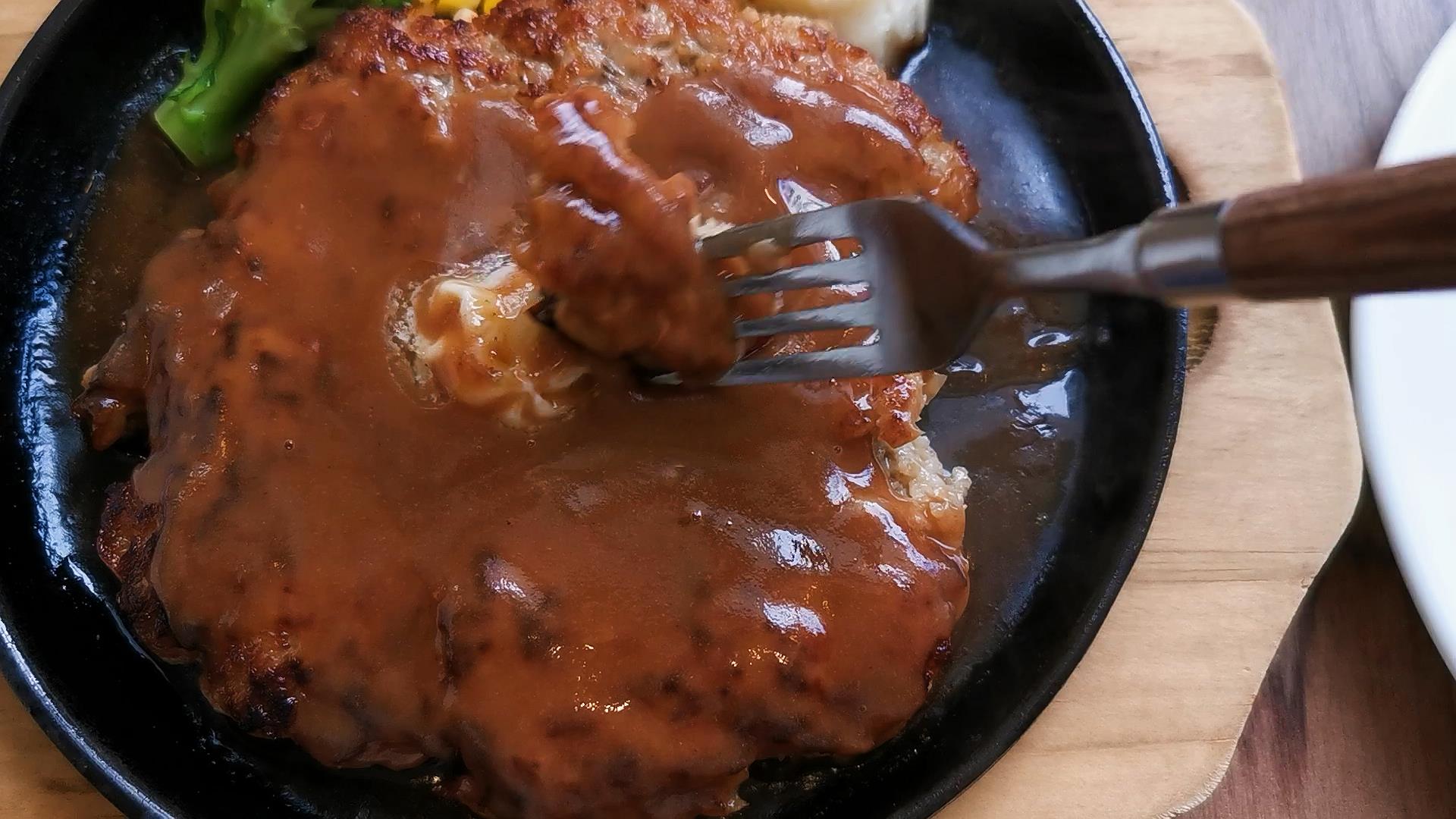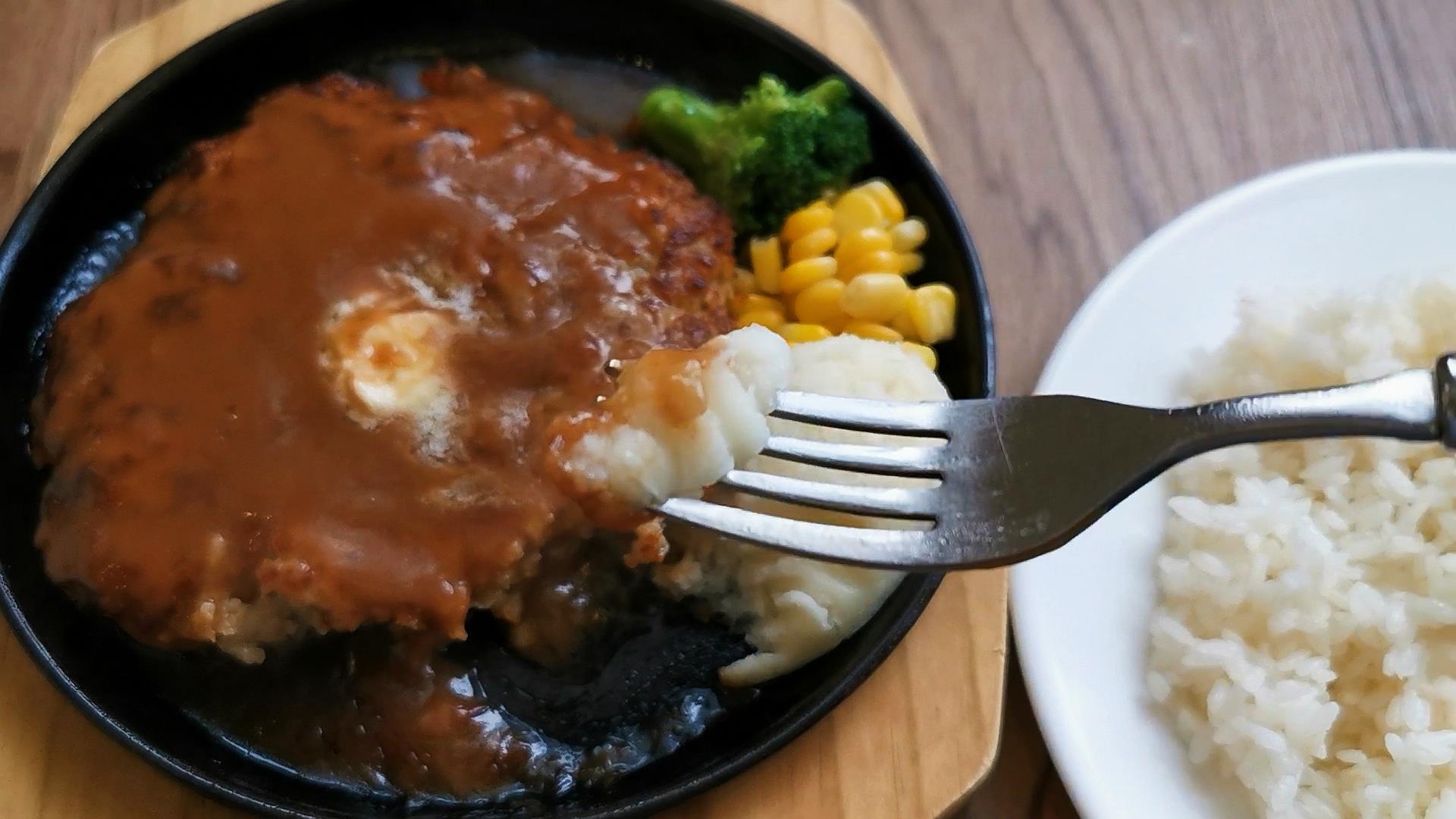 ハンバーグの上に乗っかってるバターもあうなあ !