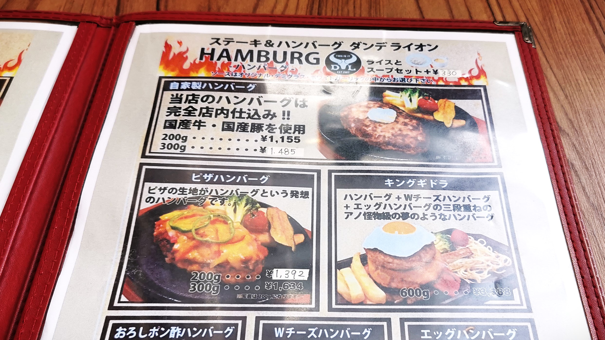 ランチの自家製ハンバーグ300g、1392円(税込)です!