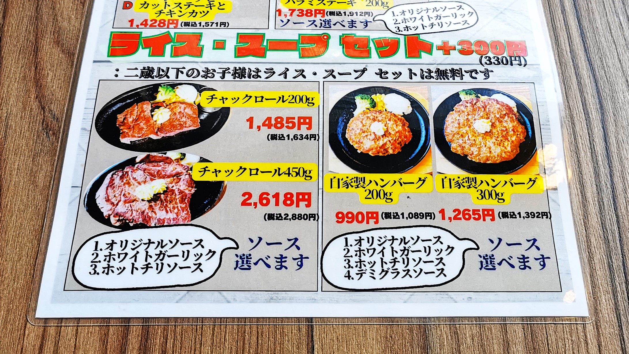 ライス・スープセットは+300円でお代わり無料です!