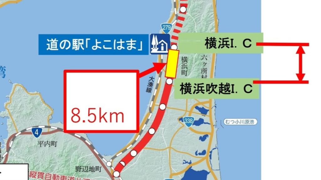もう一か所開通したのがむつ奥内ICから東通りICまでの5.3km!